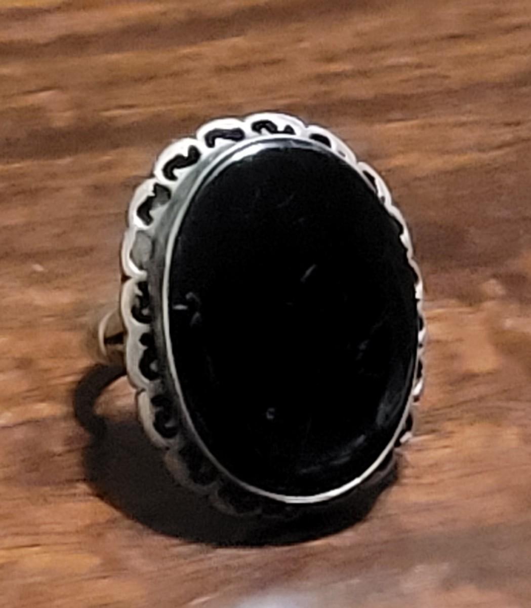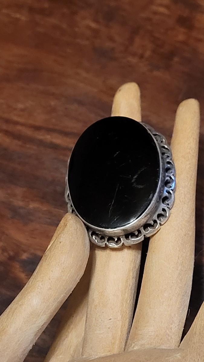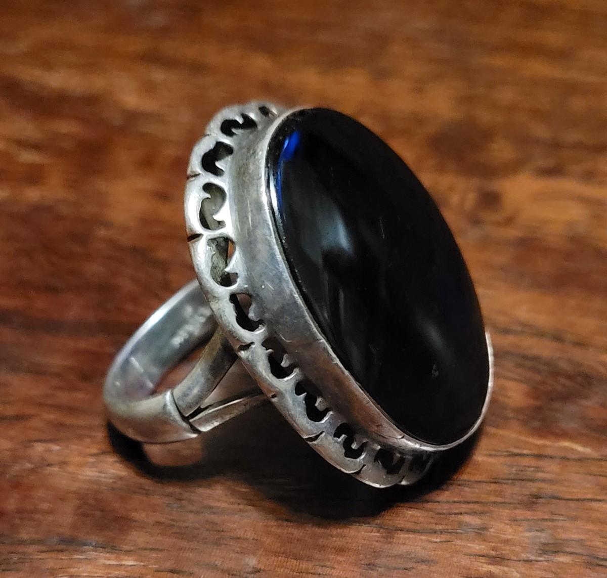 Lot 113: Vintage TAXCO Sterling & Large Black Onyx Ring