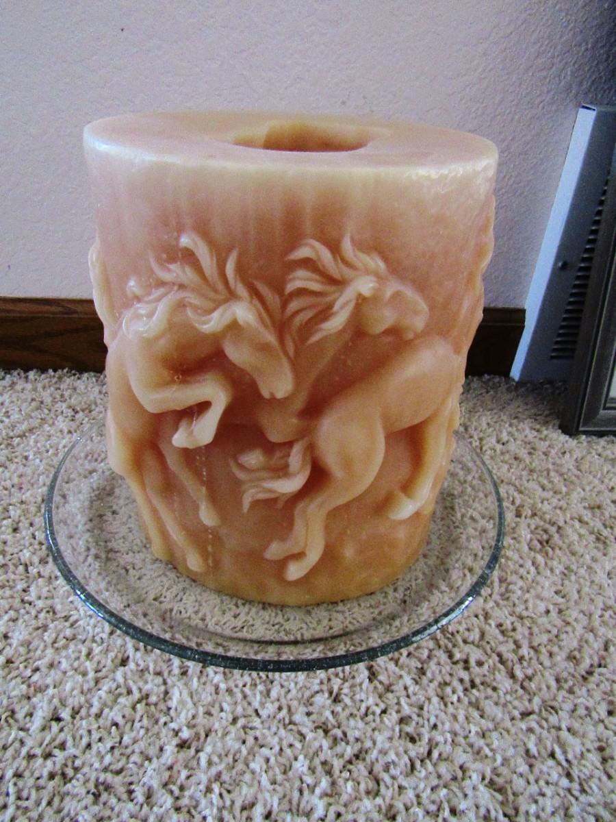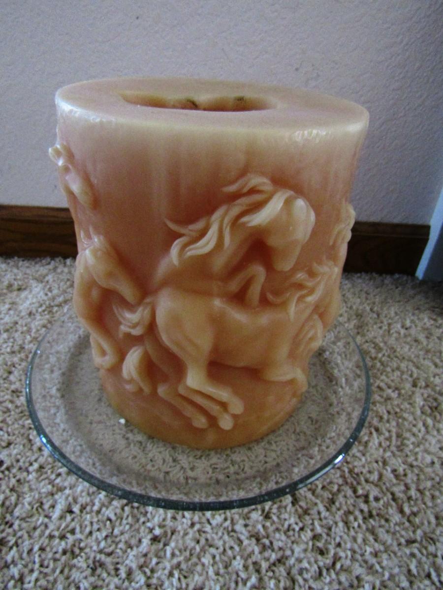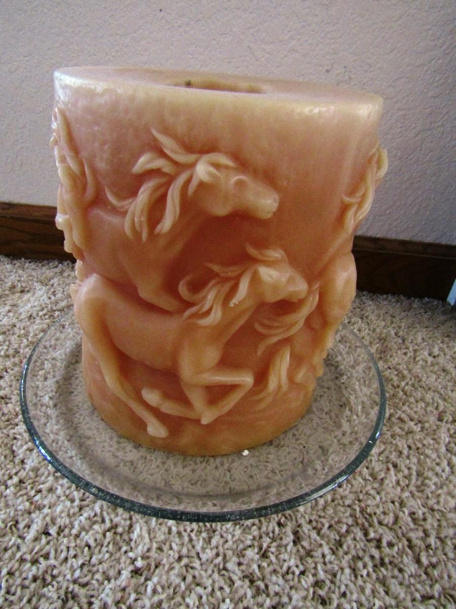 LOT 113 LARGE PILLAR CANDLE WITH RAISED HORSES (E)