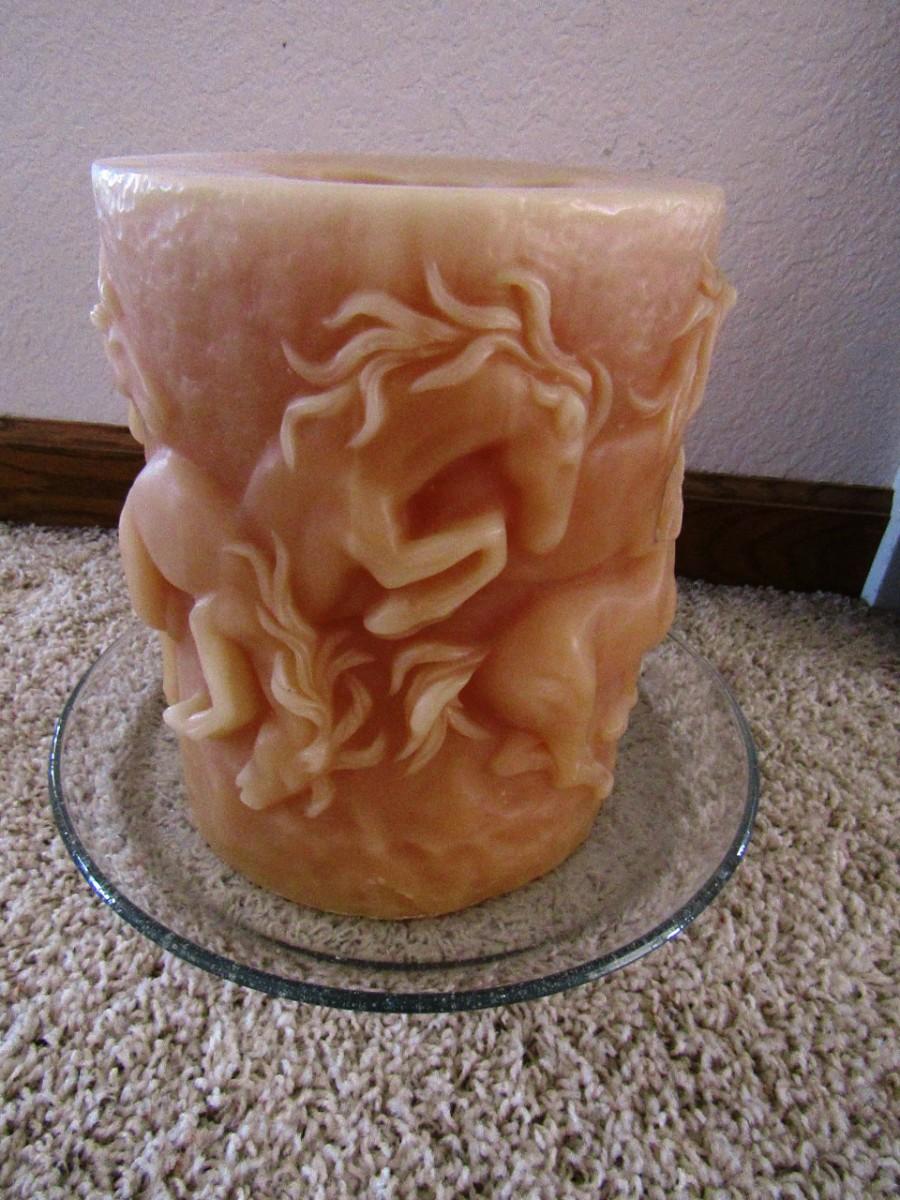 LOT 113  LARGE PILLAR CANDLE WITH RAISED HORSES (E)