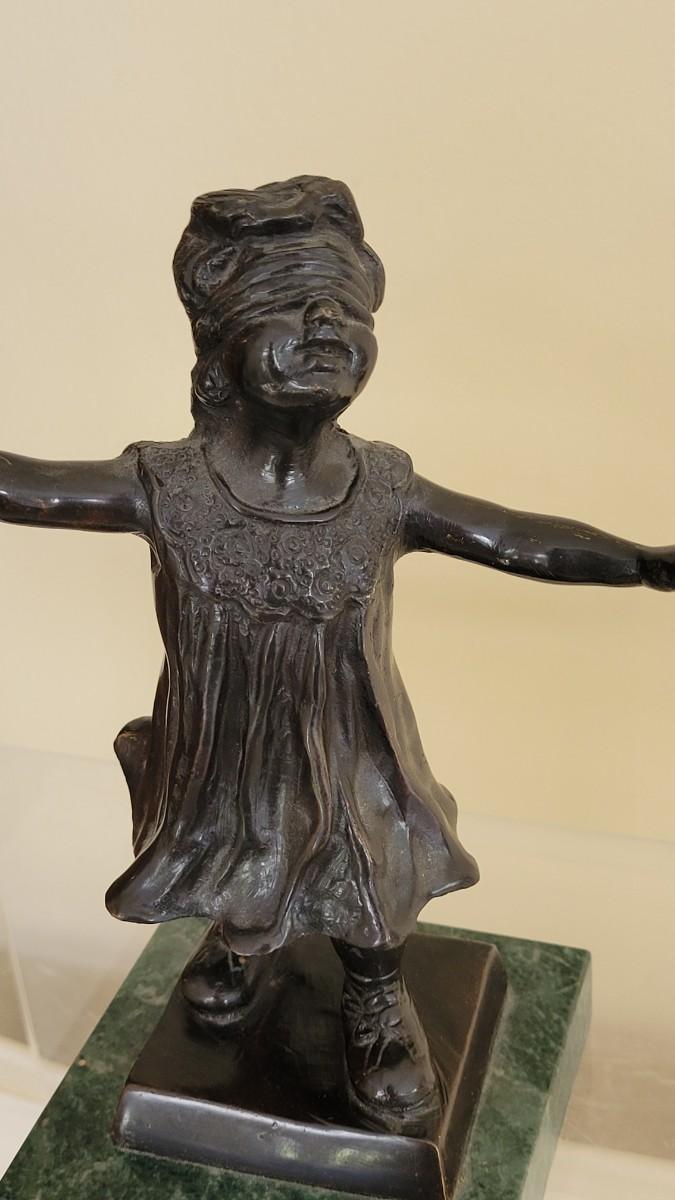 Lot 113: Reproduction 'Le Jeune Conjecture' Blindfolded Little Girl Sculpture