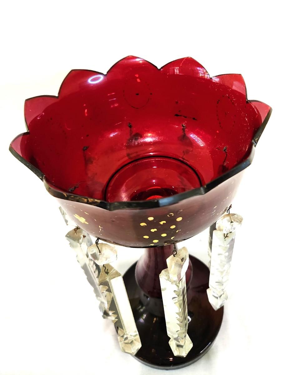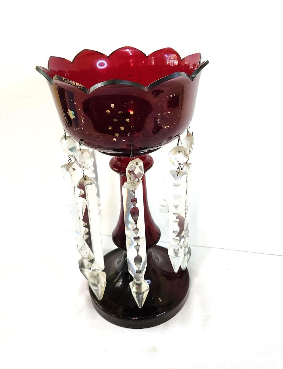 Lot #113 Antique Mantle Lustre - Ruby Glass, Long Crystals