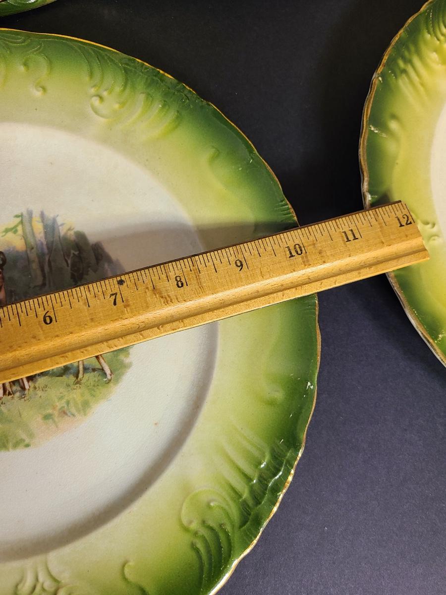 Lovely green antique plates for home decor or use. Please see all pictures as they are the best representation of the items. The pictures show condition, measurements if taken, and what is included in the lot. Due to the large amount that we photograph and the time frame, we are not always able to take measurements. All items unless noted, are pre-owned and have been used. If you purchased furniture, you must bring help. We do not allow one person to carry large furniture out on their own. Bring help, tools and a truck for the safety of our client’s homes, and your personal safety. Any damages that result to the property including walls, and floors due to moving of the furniture will be charged to the buyer. Company policy. Thank you.