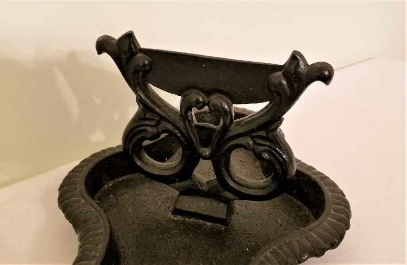 Great antique boot scrape here - cast iron. Good antique condition. 15" long, 7" tall.