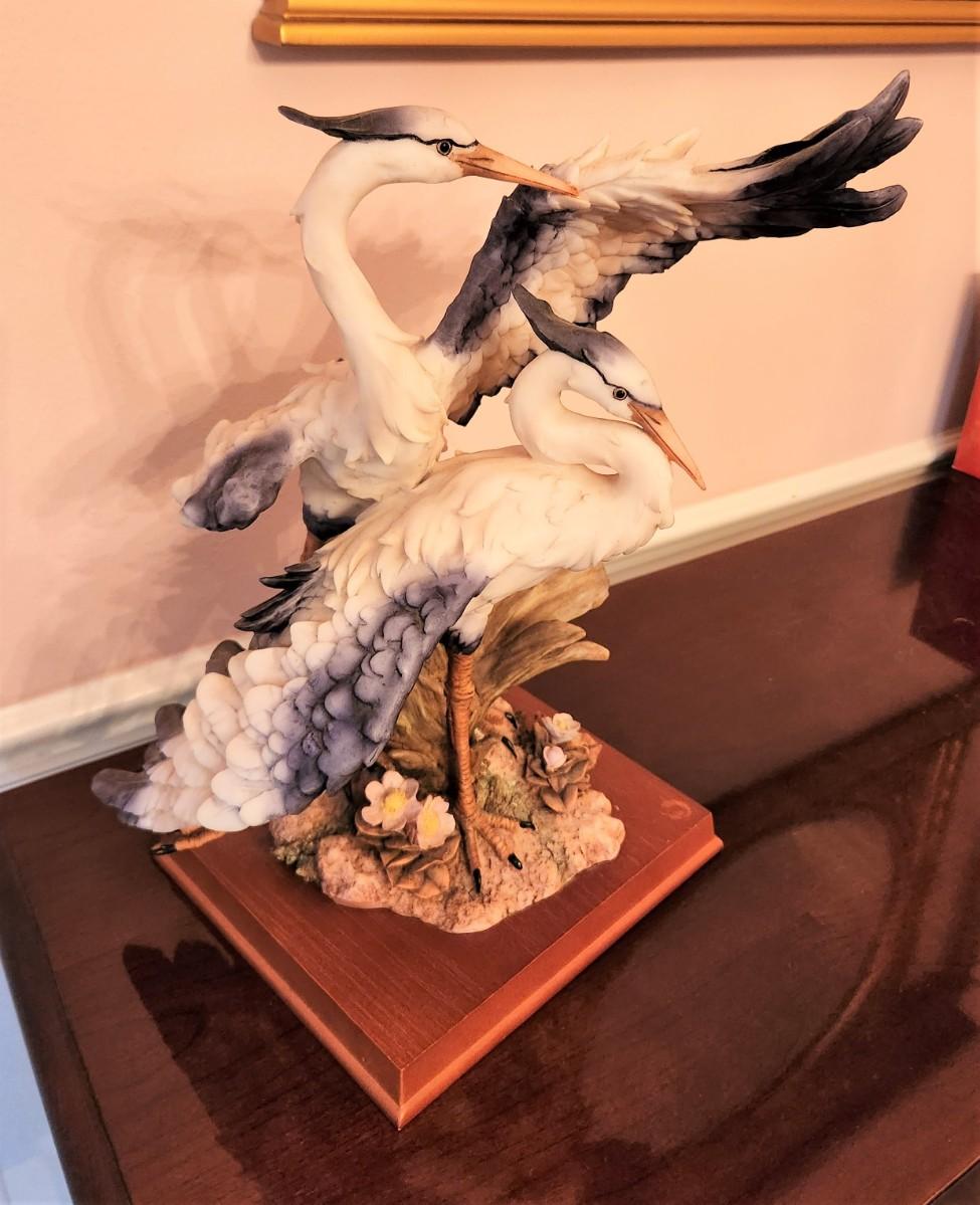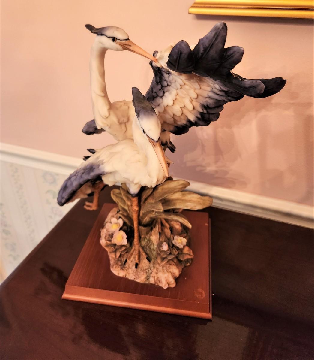 Lot #113 Contemporary Resin Sculpture on Wooden Base - Herons/Cranes