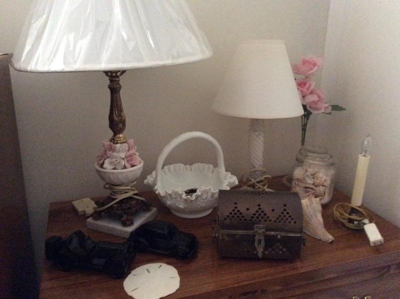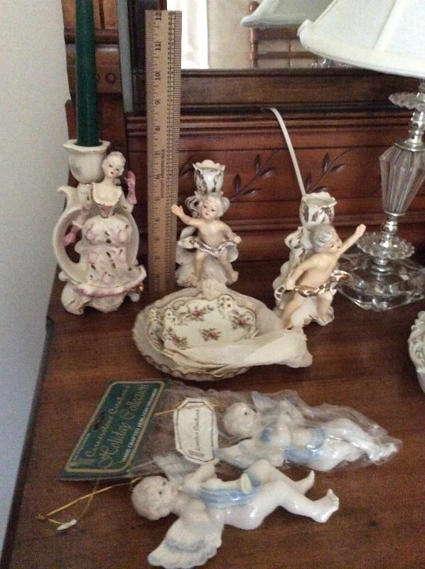 Vintage plaques of Boy Blue and Pinkie, angels,, lamps, untested, seashells, vintage Avon collectables, And more. Please bring box for packing.