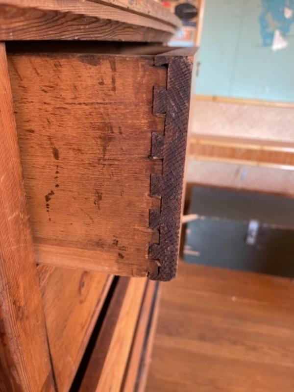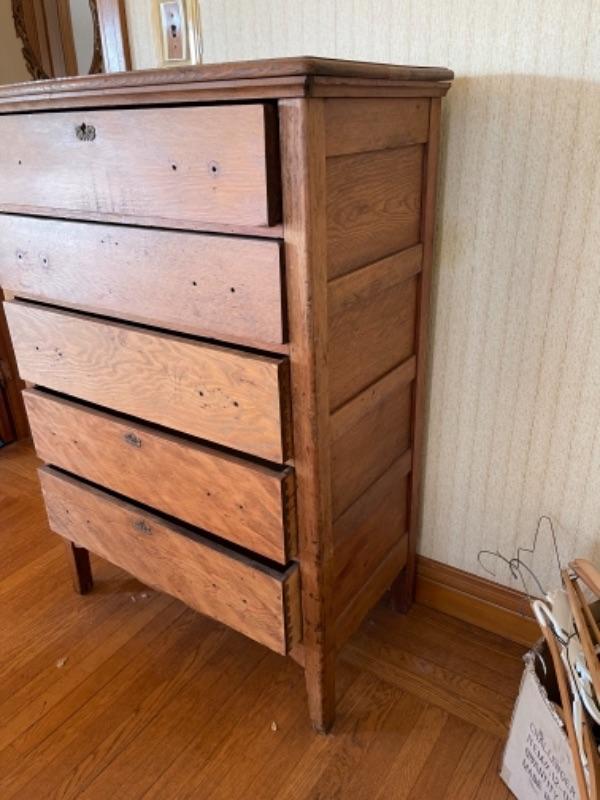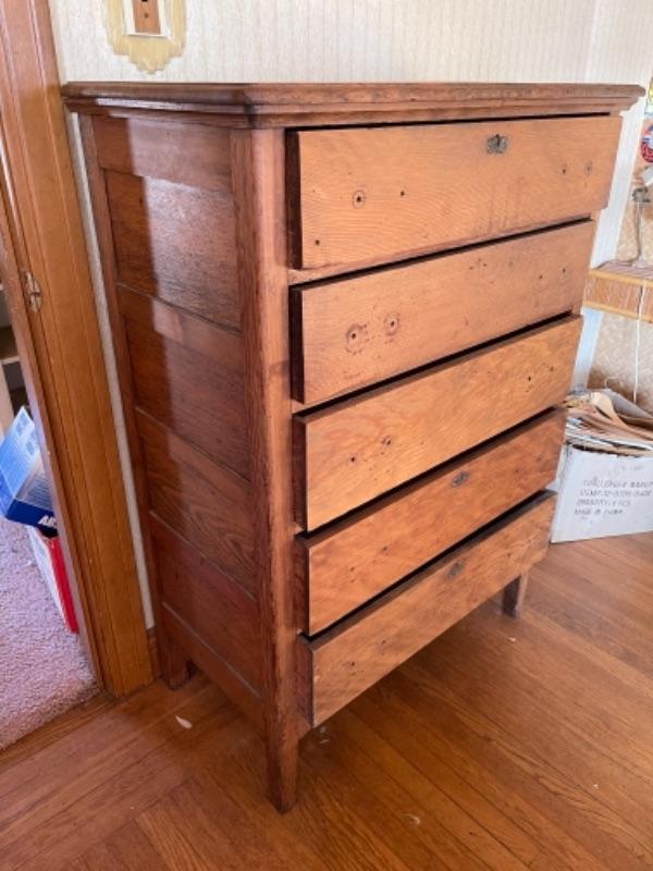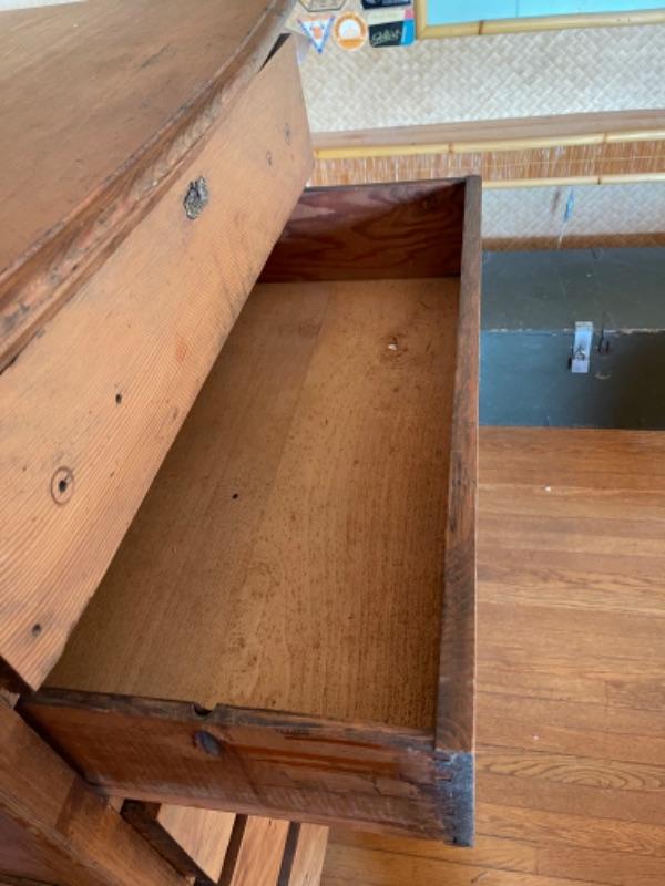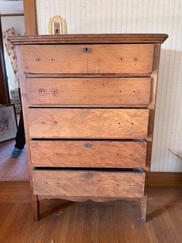 Lot 113. Five-drawer highboy, pine (1930s), no handles--Was $35 - - Now $15