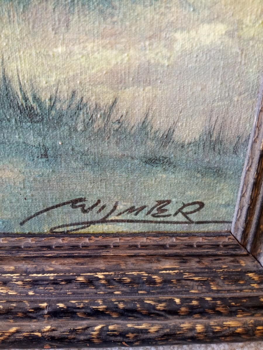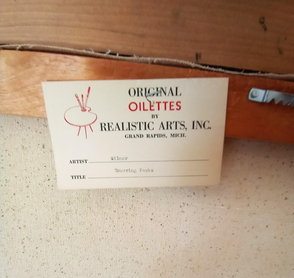 LOT 113  ORIGINAL OILETTE OIL PAINTING "TOWERING PEAKS" BY WILMER