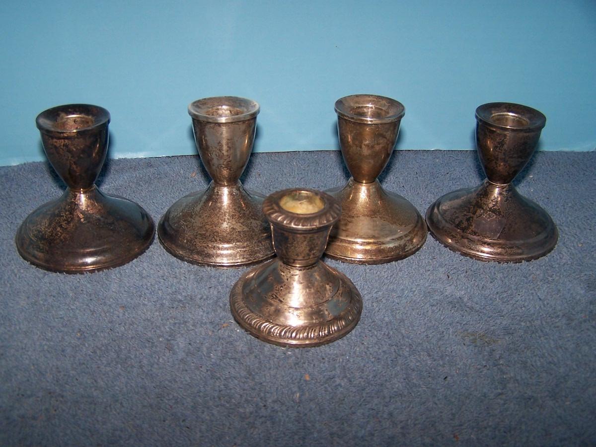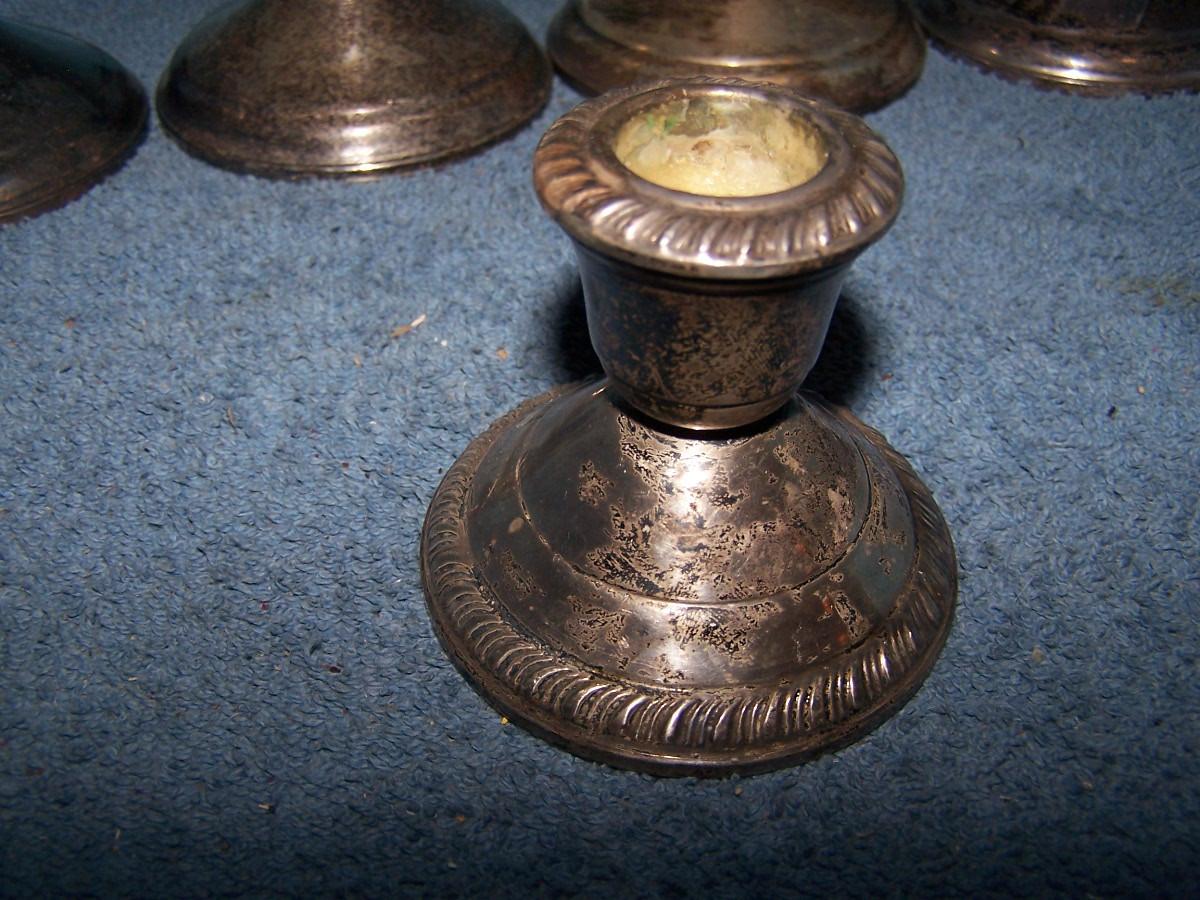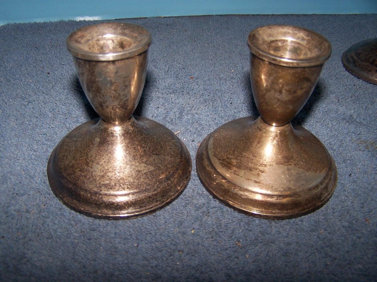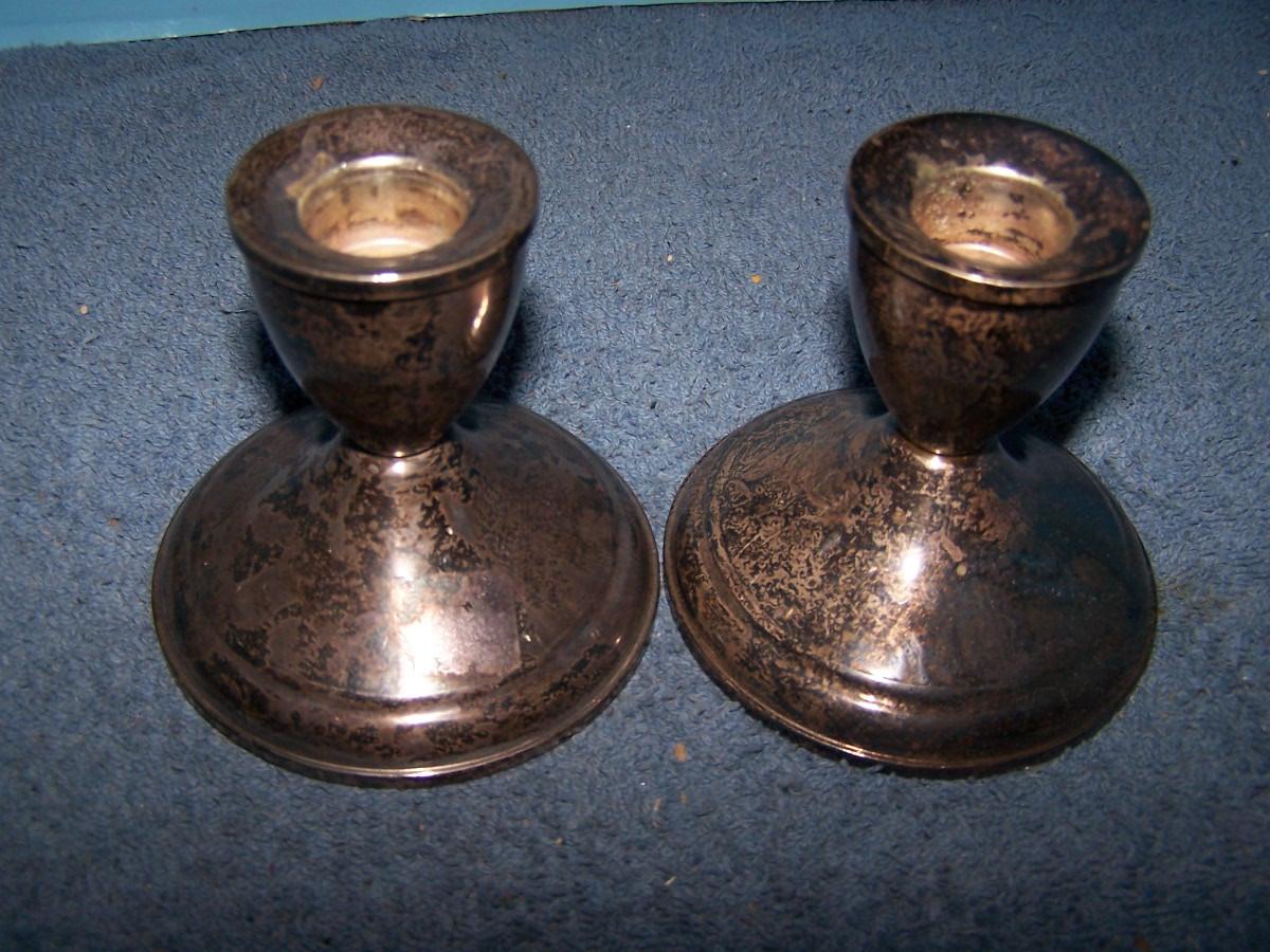THESE ARE GREAT VINTAGE STERLING CANDLESTICKS!!! MARKED.. THEY ARE WEIGHTED... SMALLEST IS 2 3/8'' TALL.. LIGHT WEAR, NEED POLISHING...