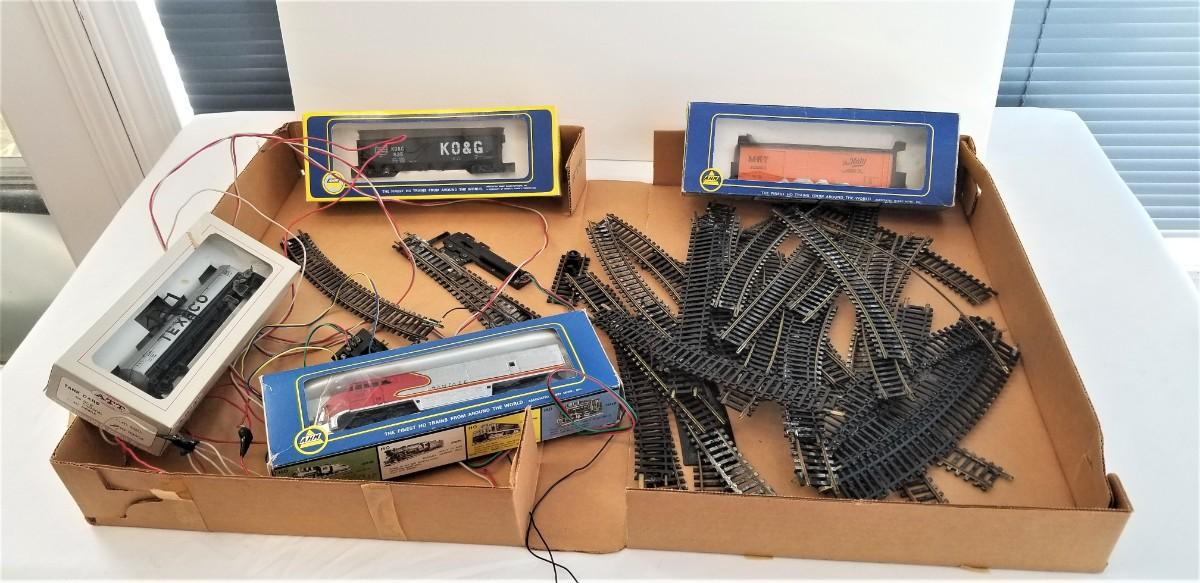 Lot #113 HO Scale Locomotive with 3 cars - track