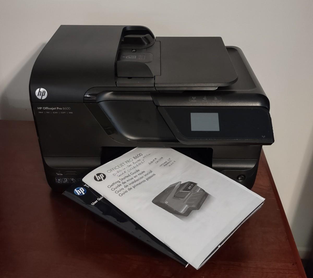 HP Office Pro 8600 Like New & Does Work ONLY ONE USER MANUAL INCLUDED. Please see all pictures as they are the best representation of the items. The pictures show condition, measurements if taken, and what is included in the lot. Due to the large amount that we photograph and the time frame, we are not always able to take measurements. All items unless noted, are pre-owned and have been used. If you purchased furniture, you must bring help. We do not allow one person to carry large furniture out on their own. Bring help, tools and a truck for the safety of our client’s homes, and your personal safety. Company policy. Thank you.