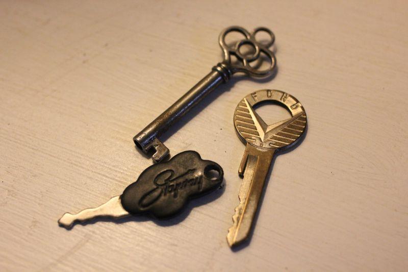 three keys - 1 skeleton, 1 Ford car key and the other is unknown.