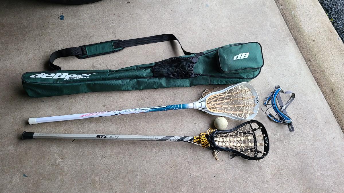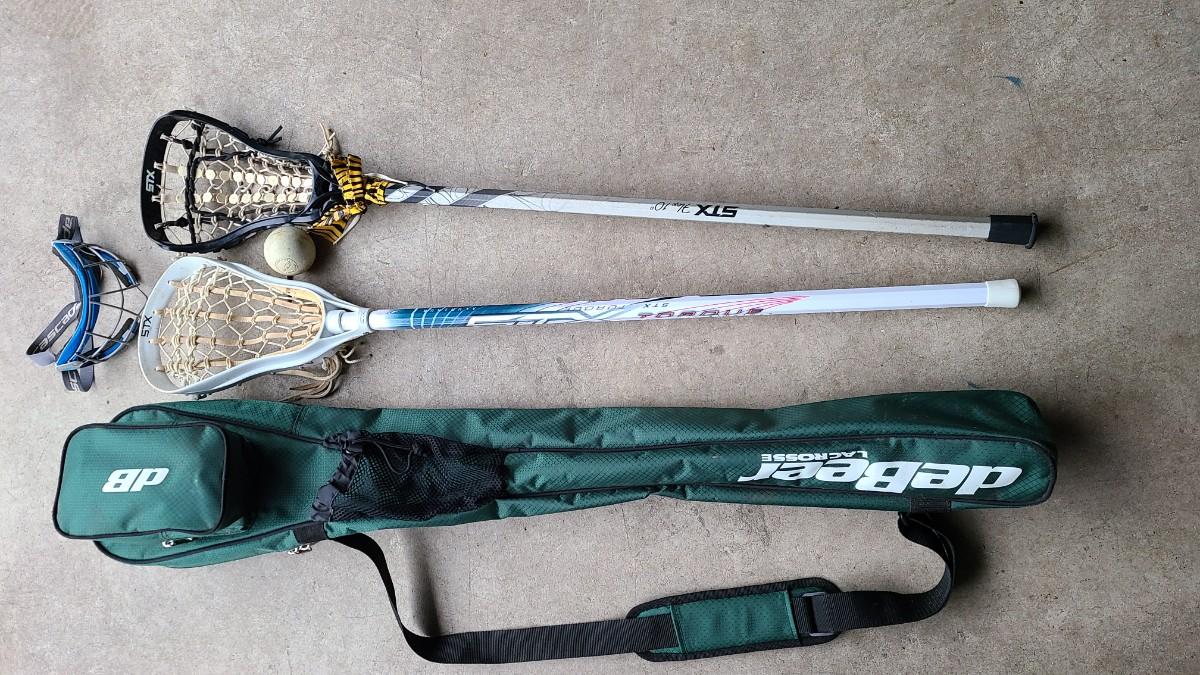 Girls LaCrosse Sticks, goggles, ball, and bag. Grey stick is sticky. Could use taped up or cleaned. Please see all pictures for content of the lot, condition of the lot, and measurements if taken. Pictures are the best representation of the items listed and items are untested unless indicated in description. Thank you for looking and have fun bidding!
