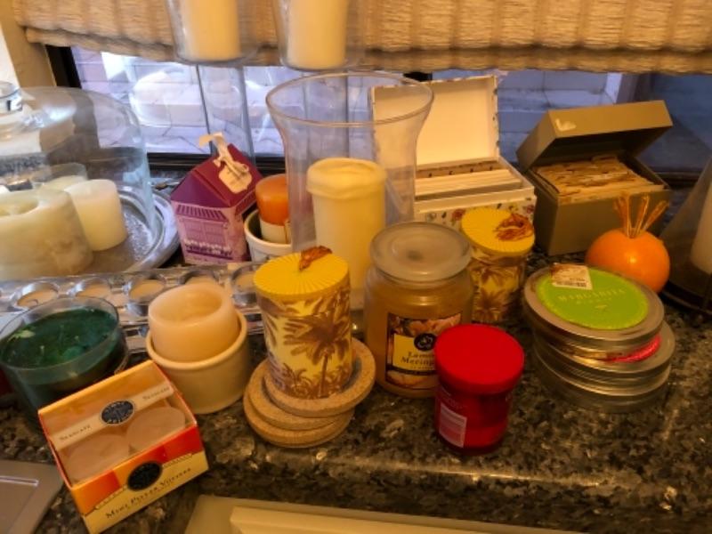 Lot 113. Large collection of candles; three boxes of recipes--WAS $55““NOW $41.25