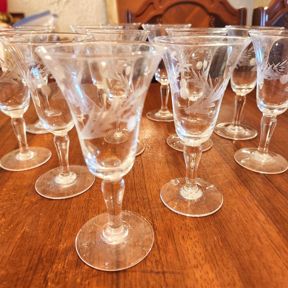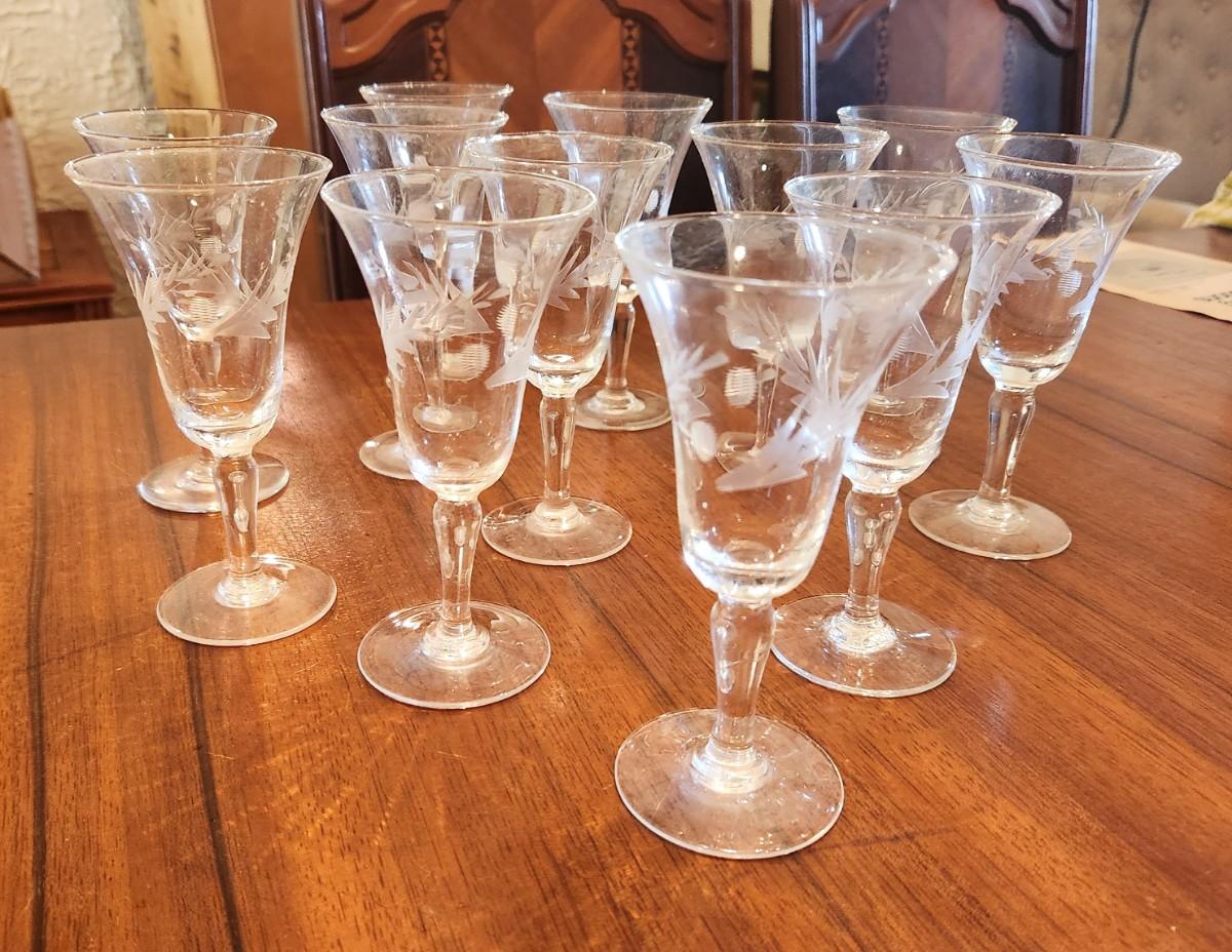 Lot #113 Lot of 11 Vintage Crystal Etched Cordial Glasses
