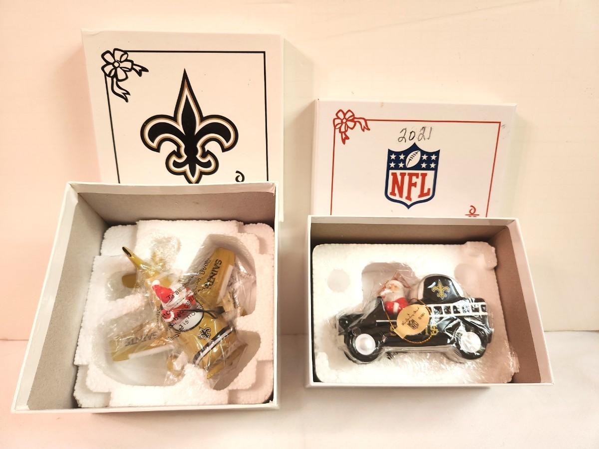 Lot #113 Lot of 2 NFL New Orleans Saints Christmas Ornaments