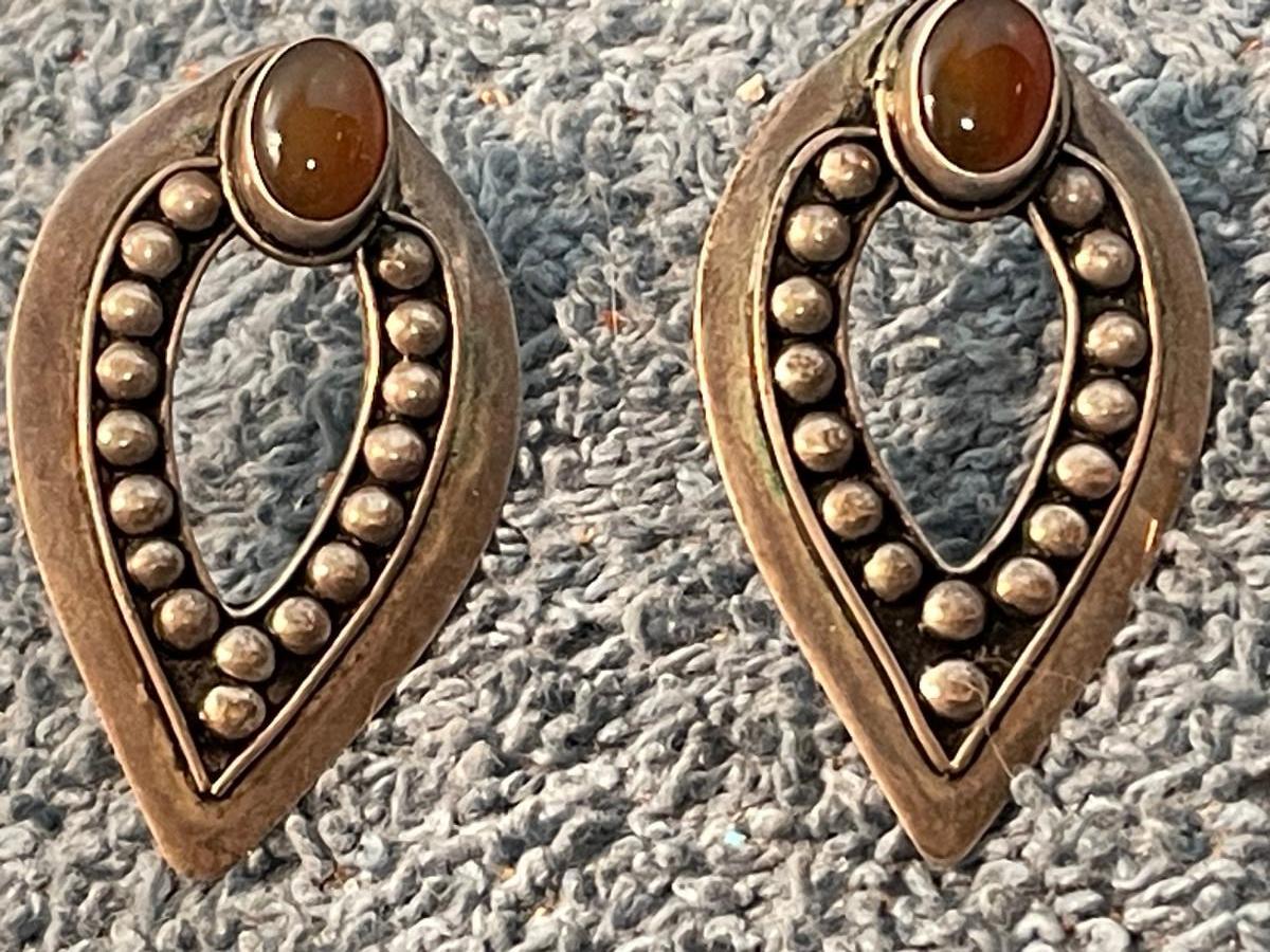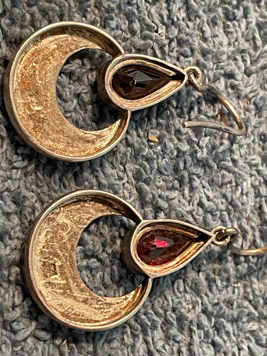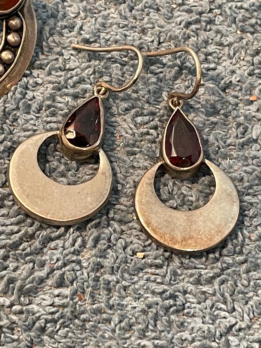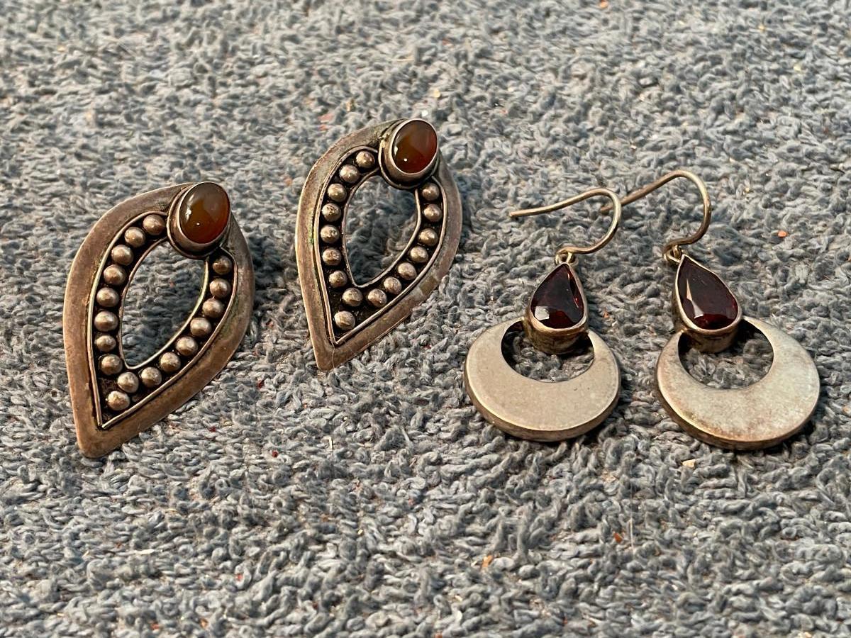 LOT 113 LOVELY 2 PAIR STERLING GARNET & AMBER EARRINGS