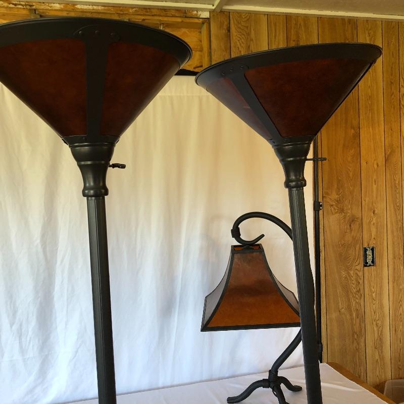 Add stylish light to your home with these floor lamps and table lamp. All lamps are solid and sturdy and in good condition. All