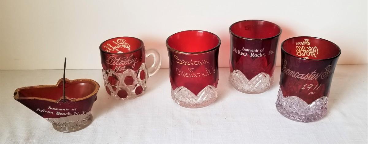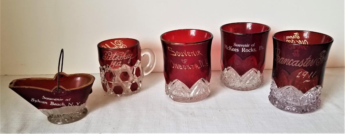 Lot #113  Ruby Flashed Souvenir Lot - early 20th century - 5 pieces