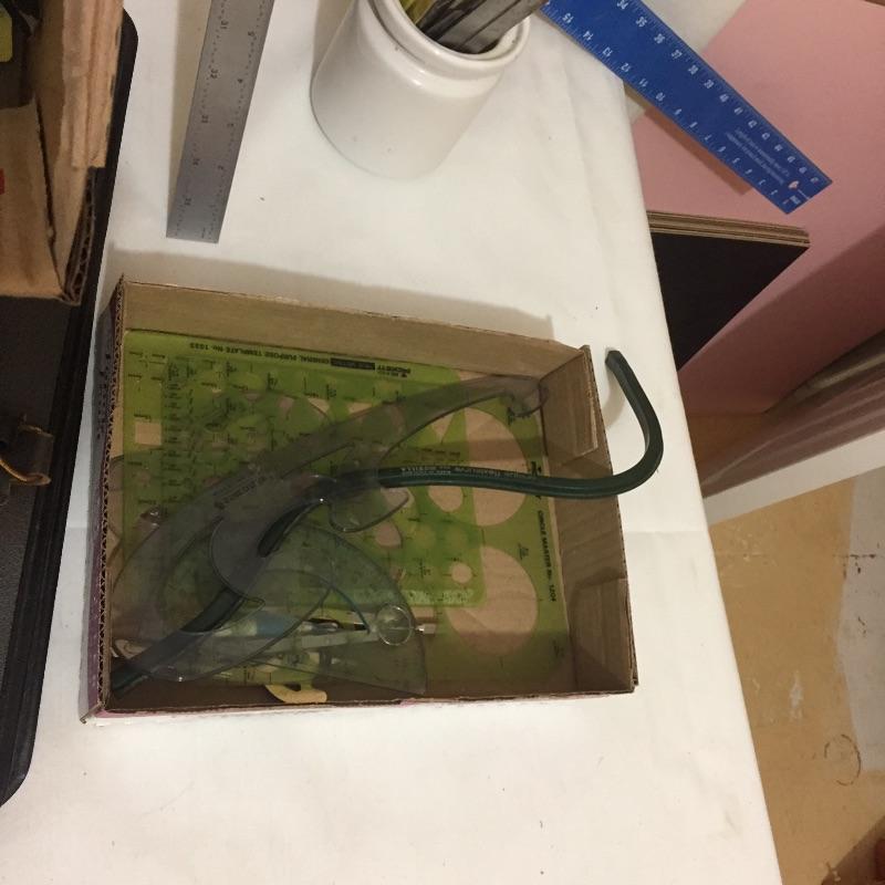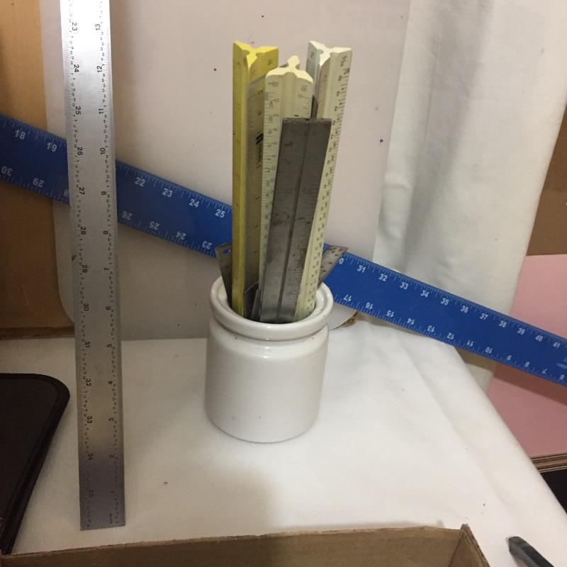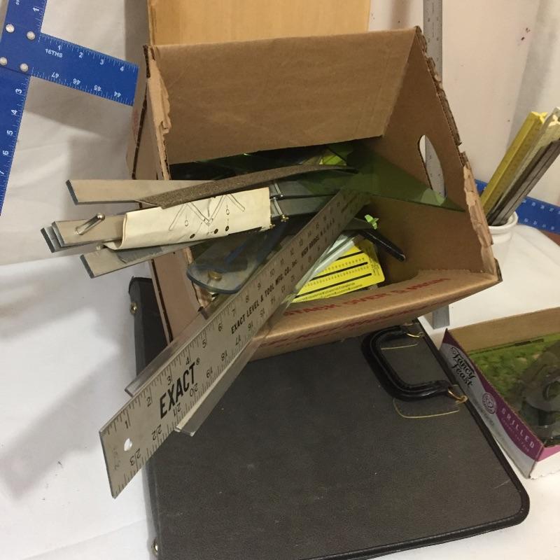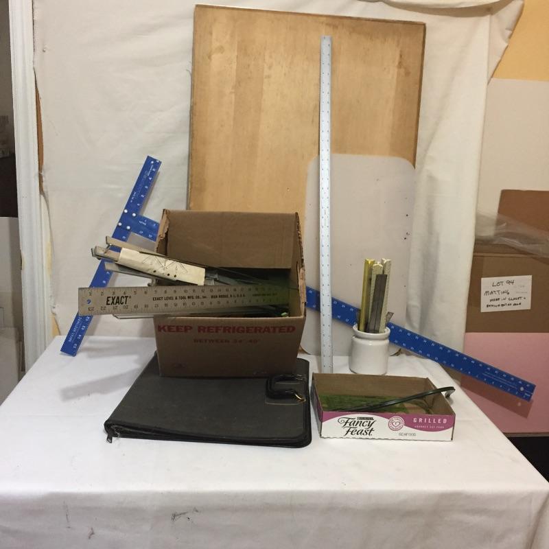 Made to measure, this lot includes all kinds of rulers from 12” to a 47” T Square. Various cutting boards and more come in this handy lot.