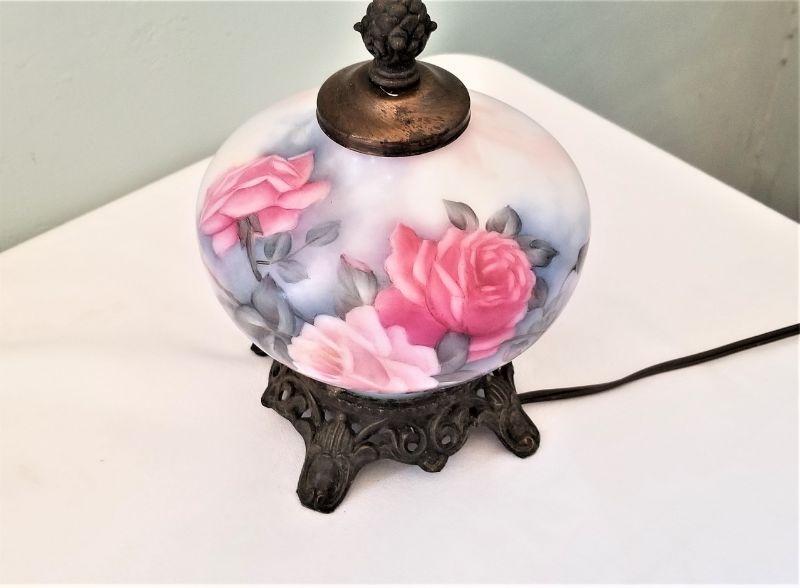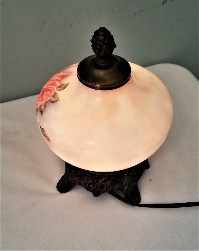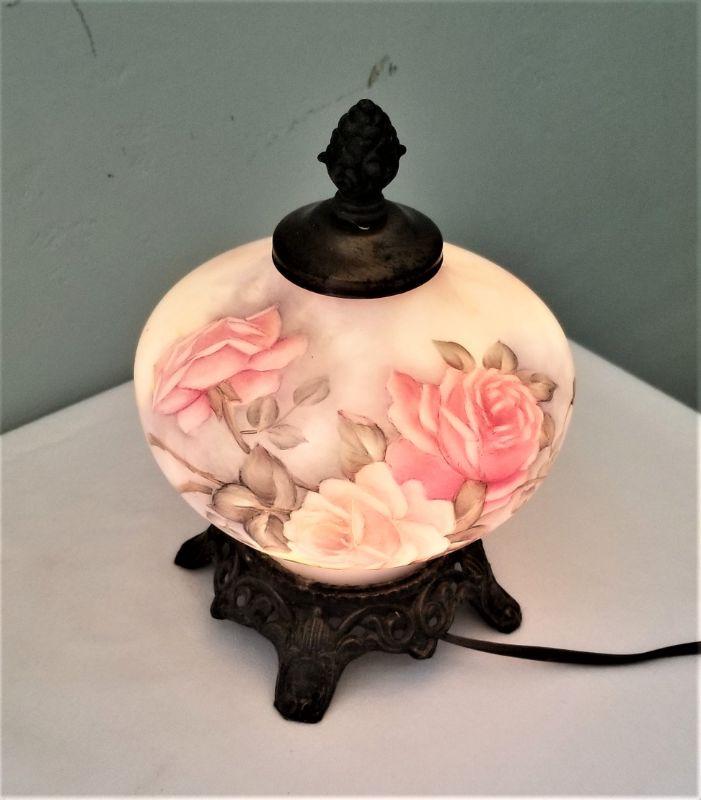 Sweet little hand painted accent lamp or night light - floral motif. Switch on cord - good working condition. Very pretty. 7.5" tall.