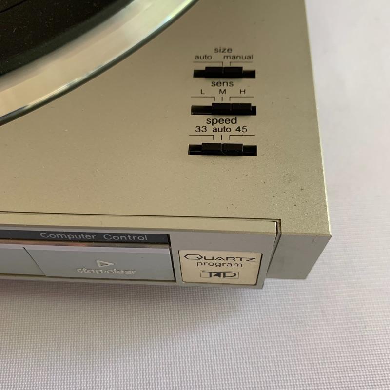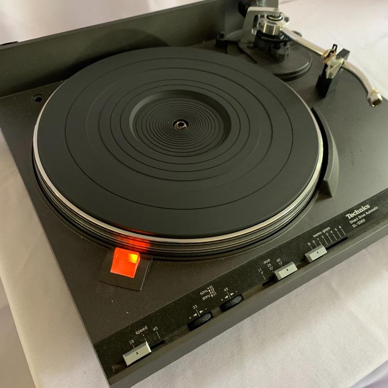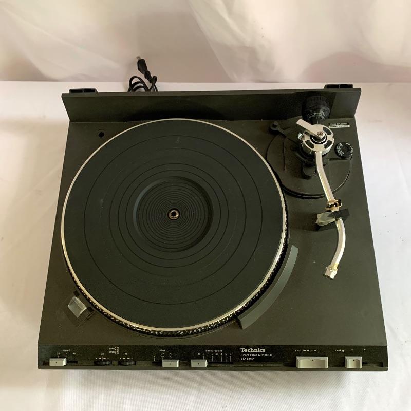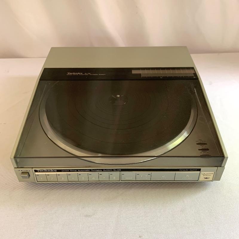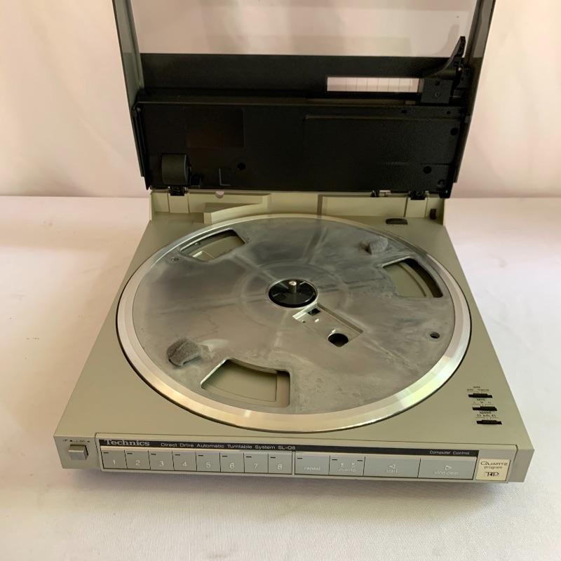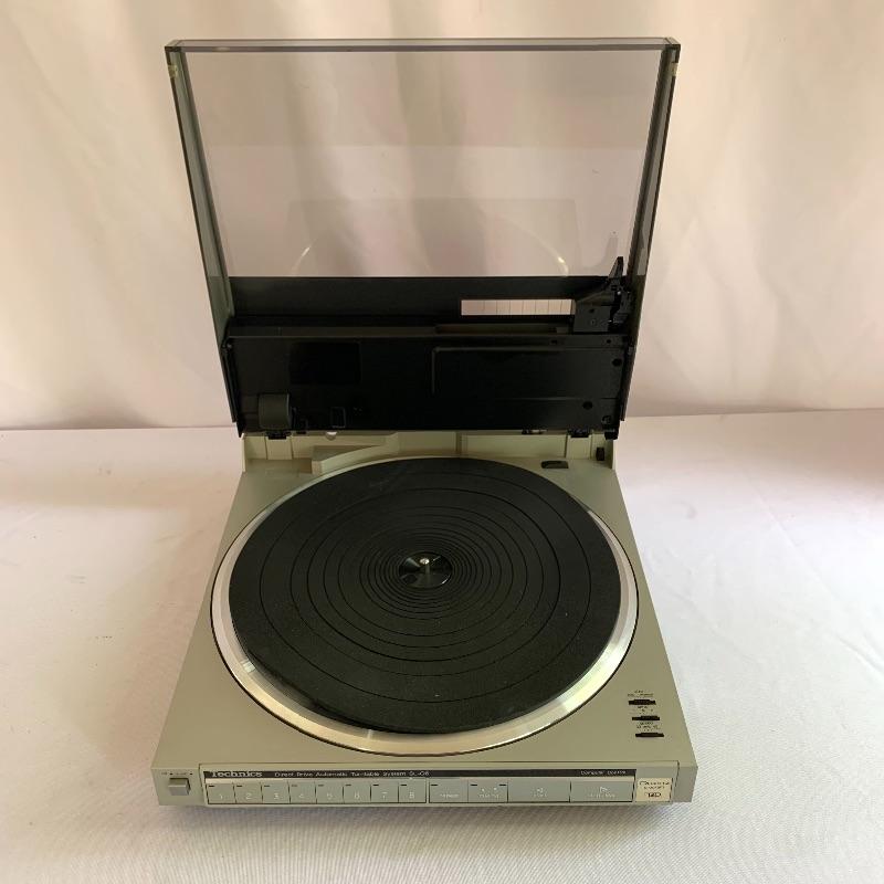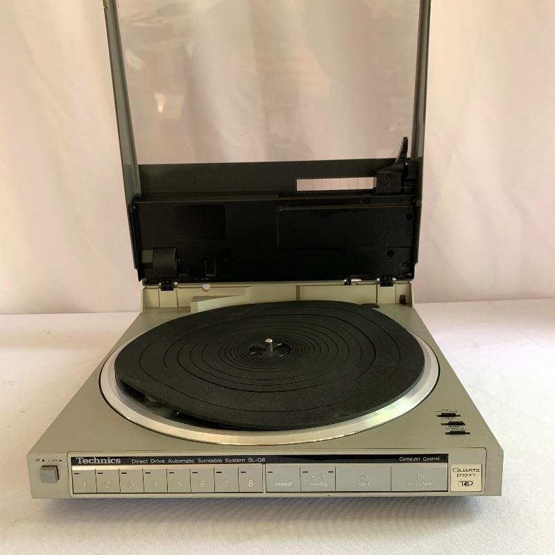 This lot includes three Technics turntables. One is a Technics Direct Drive Automatic Turntable System SL-1650. It powers on and spins when plugged in. It has an anti-skating feature and a memo-gram. The next one is a Technics Direct Drive Automatic SL-3360. It also has an anti-skating feature and a memo-gram. It powers on when plugged in. The third is a Technics Quartz Direct Drive Automatic Turntable System SL-Q6. It does not have an electrical cord to test functionality. It does come with operating instructions.