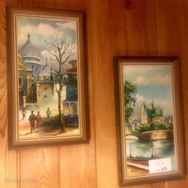 Two art pieces framed acrylic on canvas. Signed "Mario".