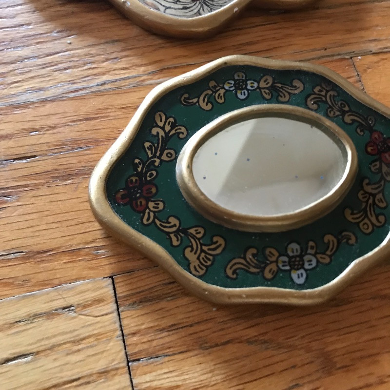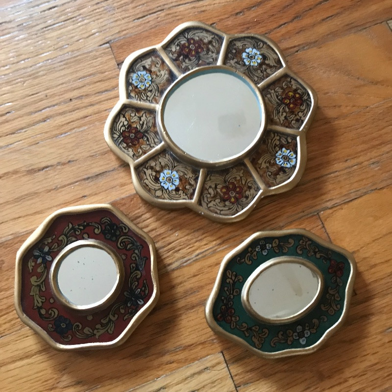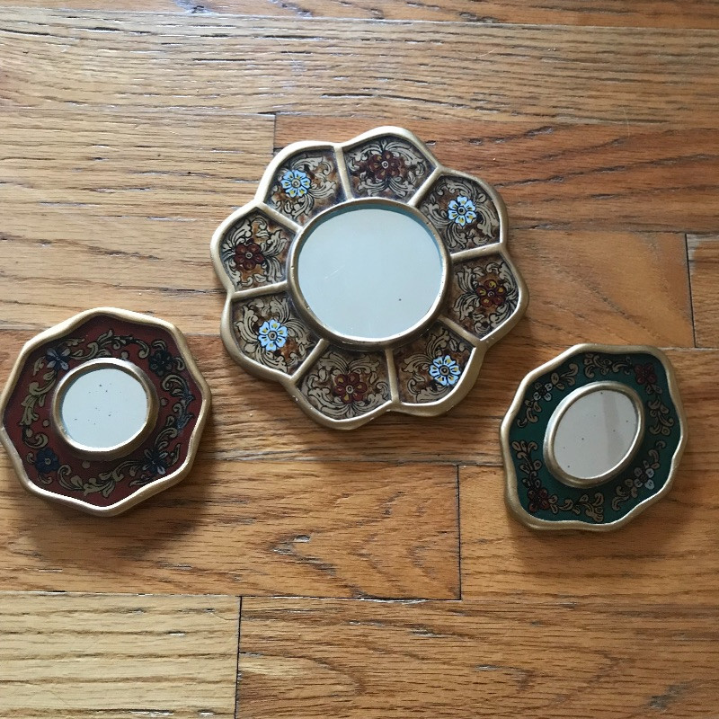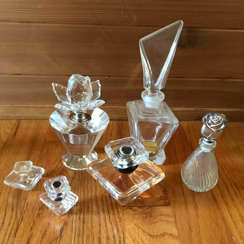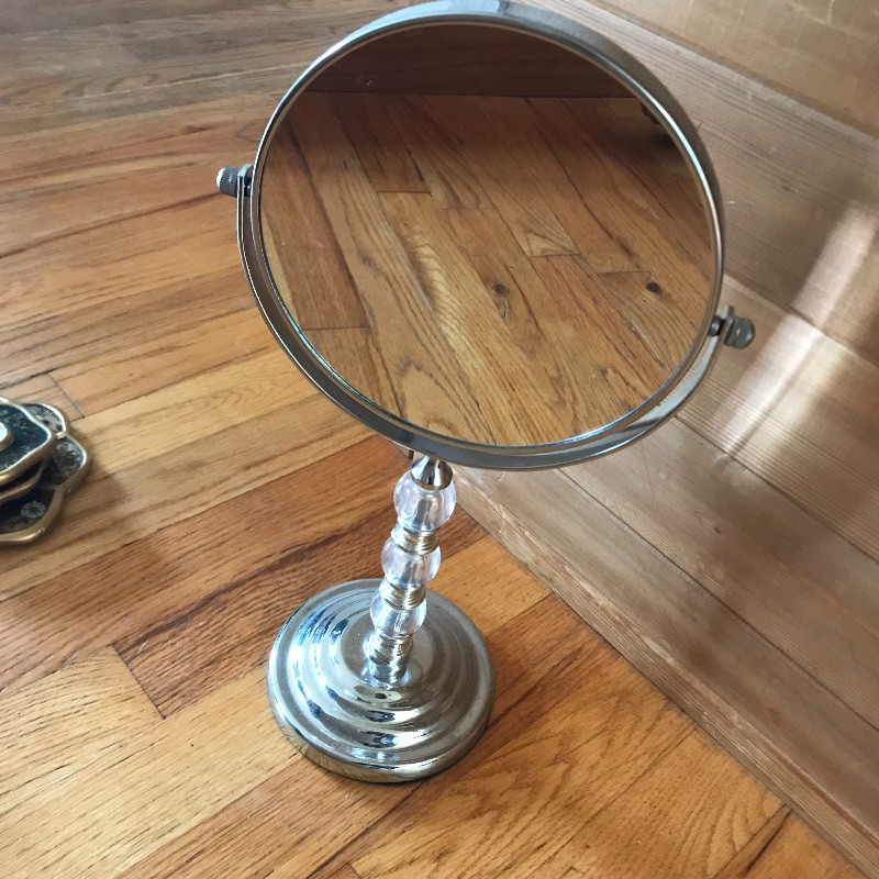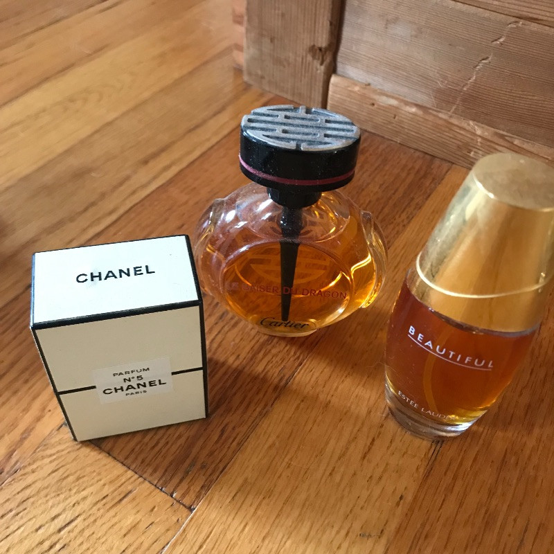 Lot includes beautiful and aromatic additions to your vanity table. You’ll find a two-sided magnifying mirror, three small gold-trimmed floral mirrors, various fancy perfume bottles, and full bottles of perfume including an unopened Chanel No. 5 and Cartier. See pics. Shipping available.