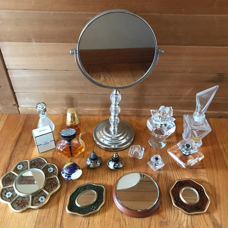 Lot 113 - Vanity Perfumes, Mirrors, and Bottles