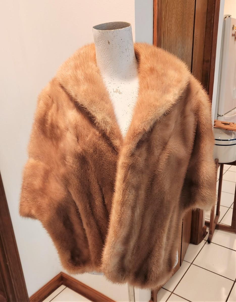 Sweet Maison Blanche Mink Coat/Stole - good condition, pelts are fine. 16" across at the shoulders and 20" long in back, 24" long in front. Would probably best fit a lady sized 8-14.