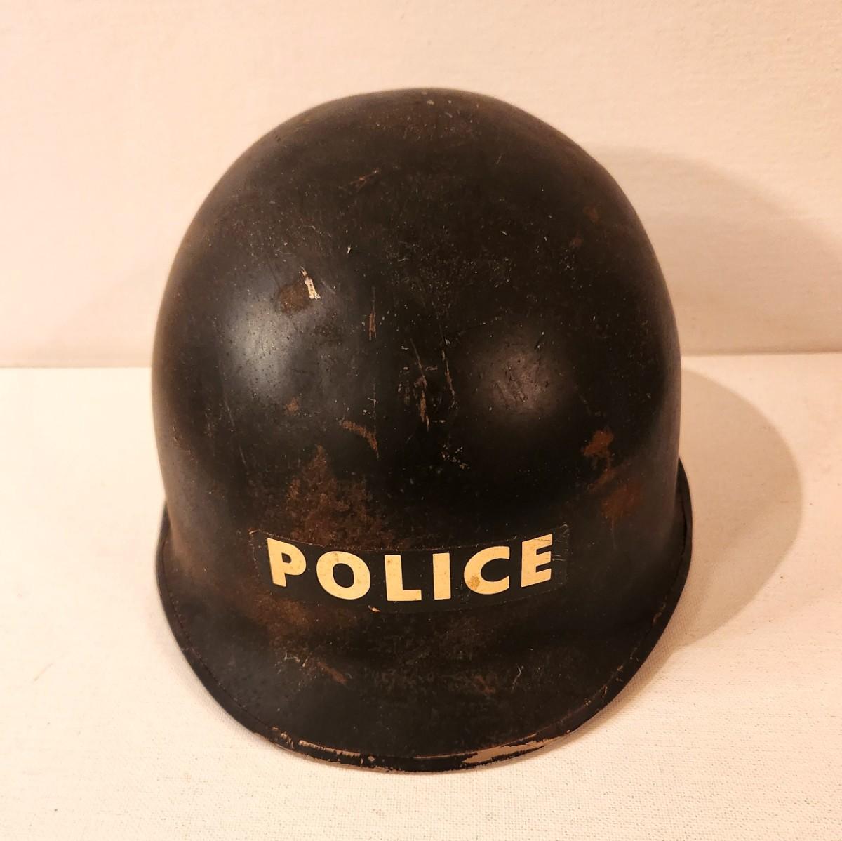 This helmet is as found - the word "police" is a sticker on the helmet - note strap condition.