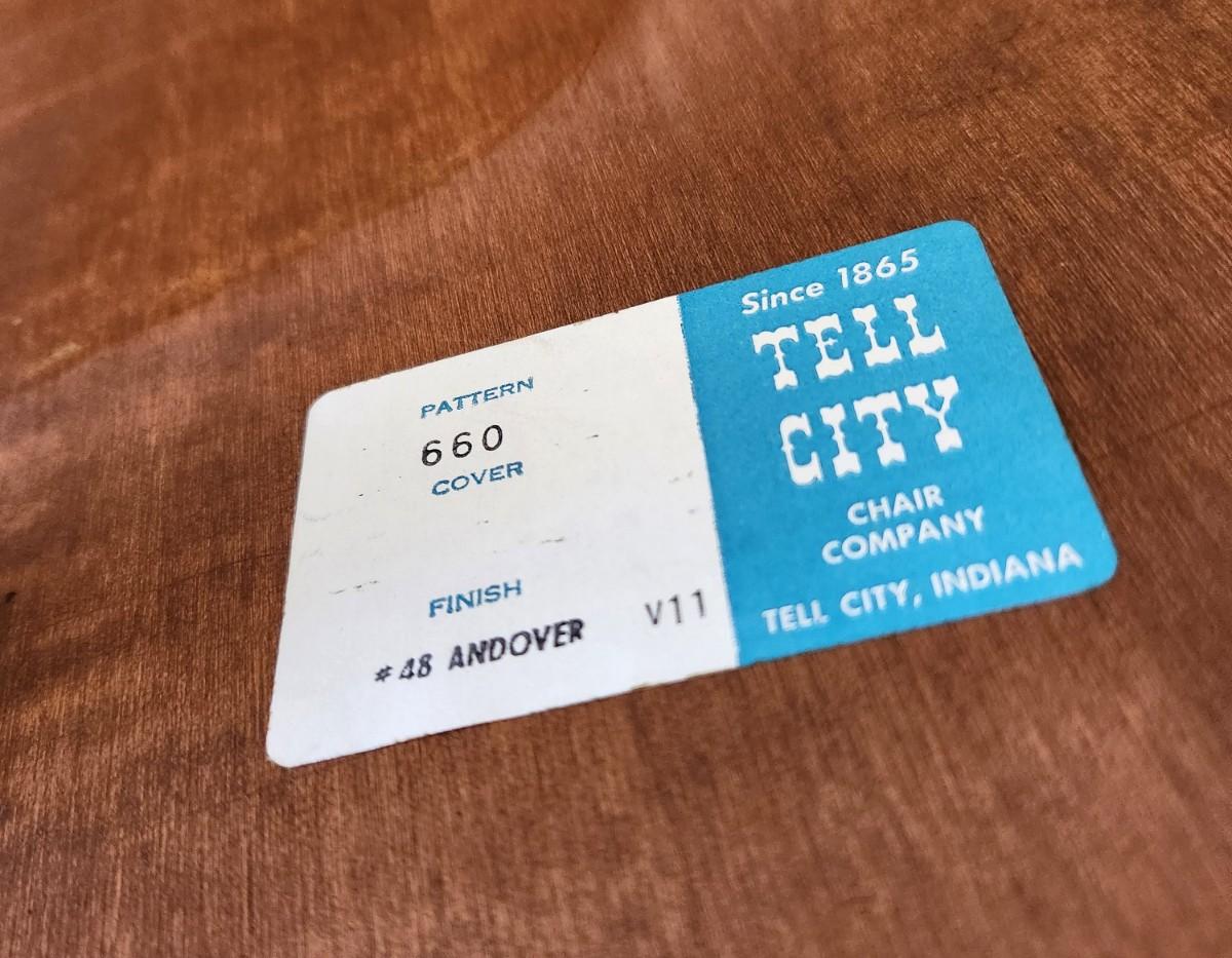The Tell City Furniture Company was known for their crafted rocking chairs - this one is in the "Andover" design - 23" across, 42" tall, 28" Deep. Good condition. Label on bottom
