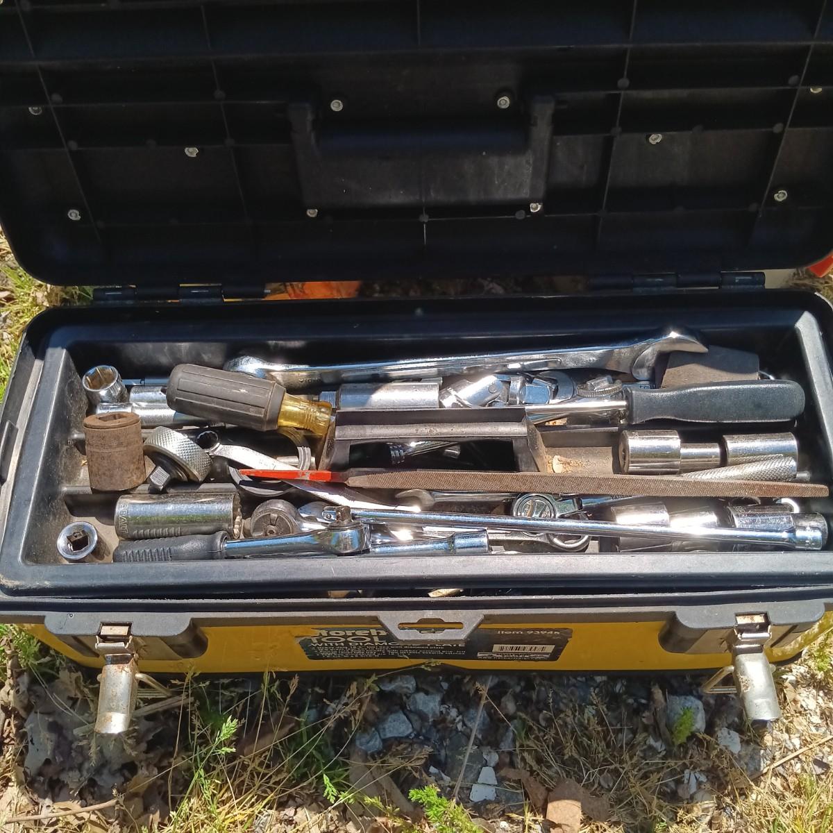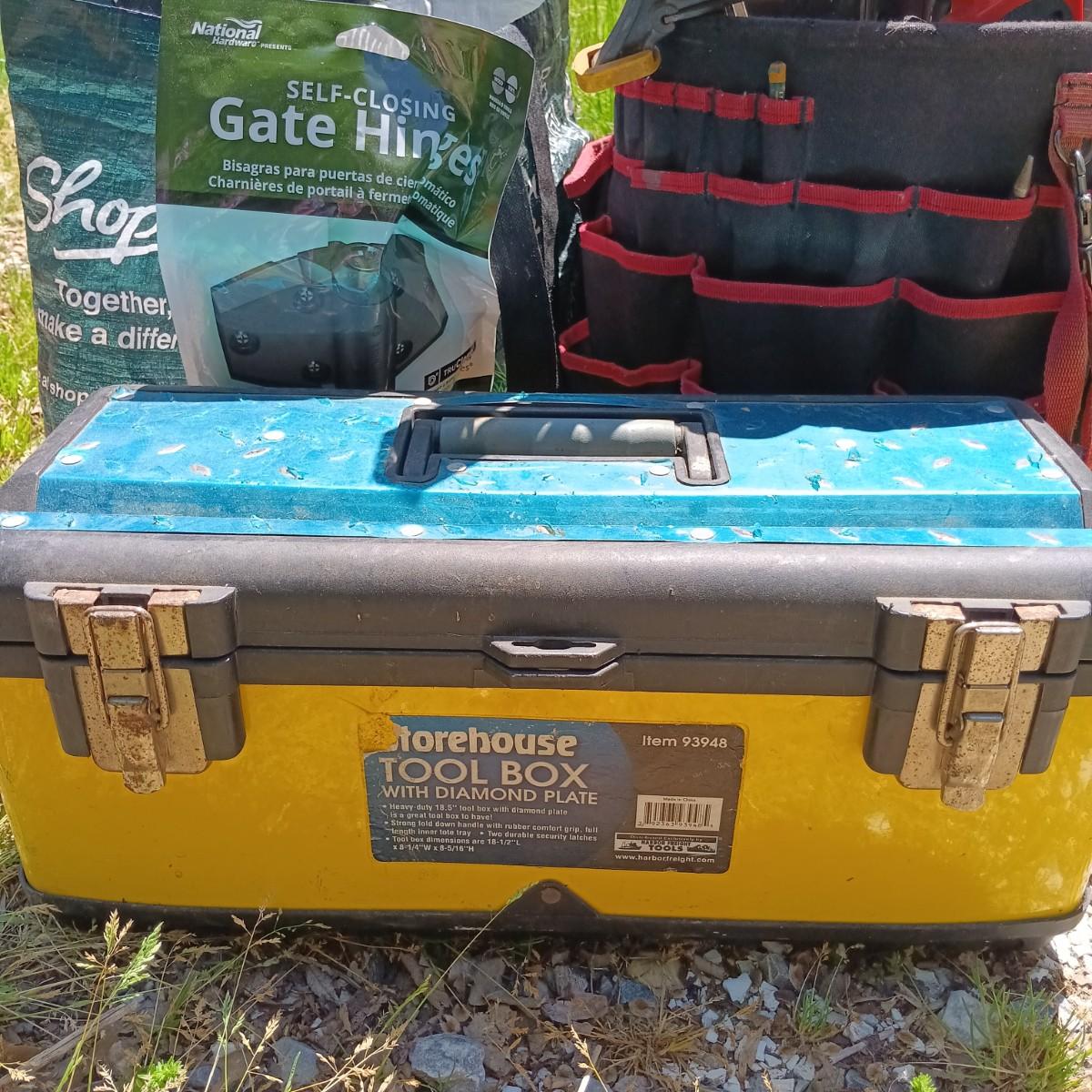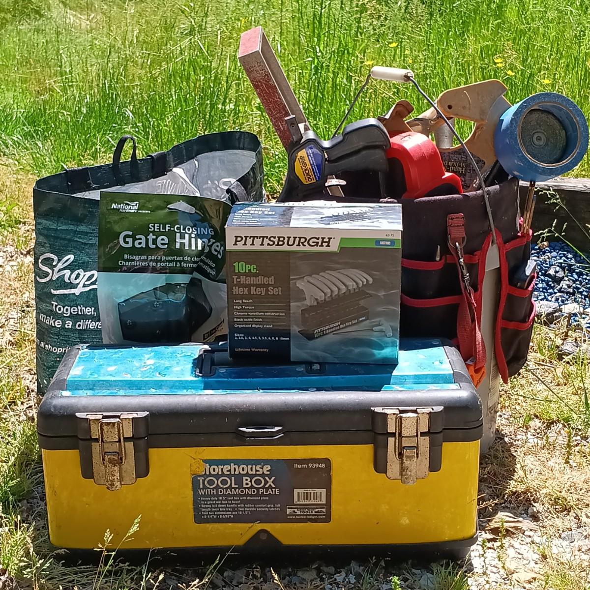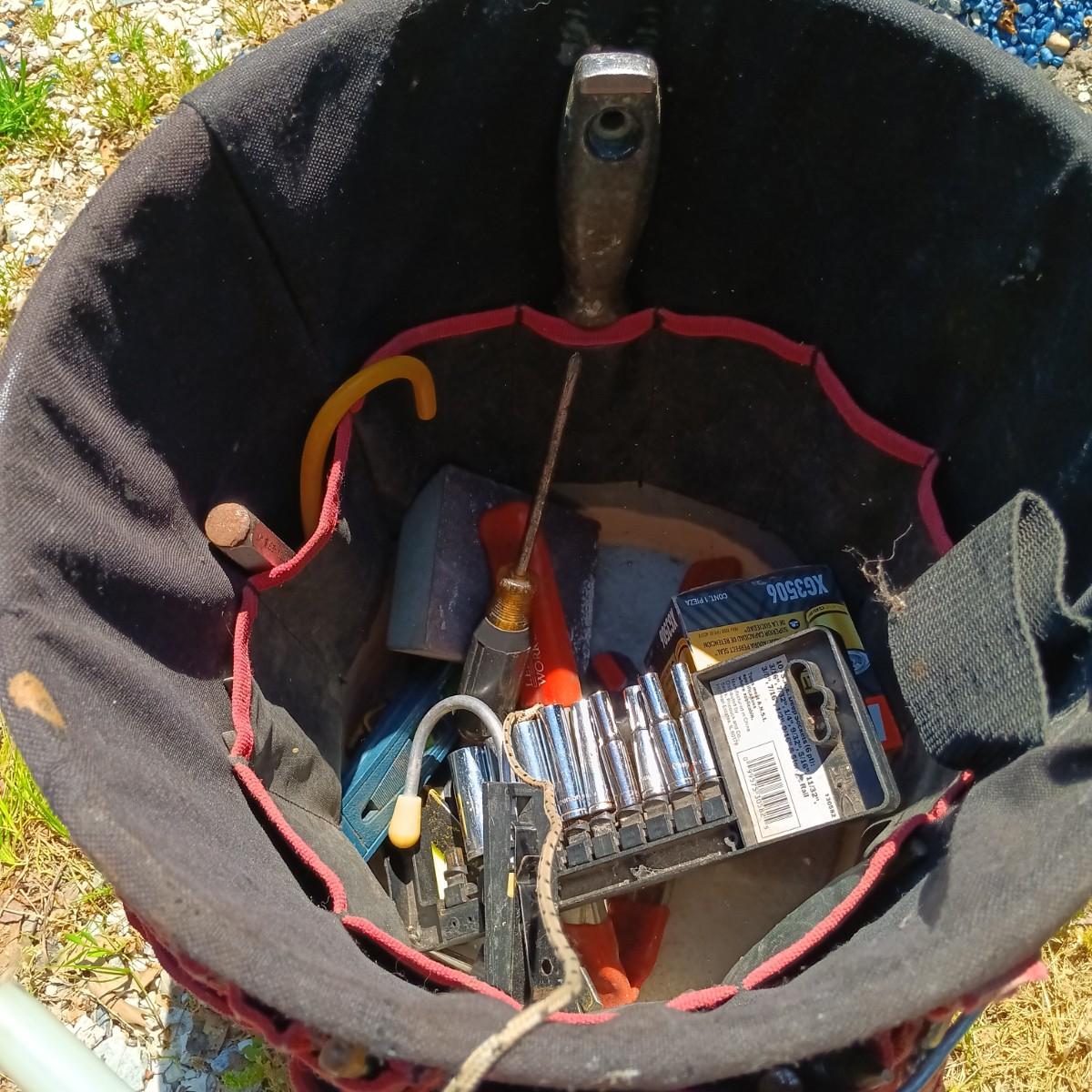 LOT 2: Garage Finds- Storehouse Tool Box and Bucket Tool Bag with Tools