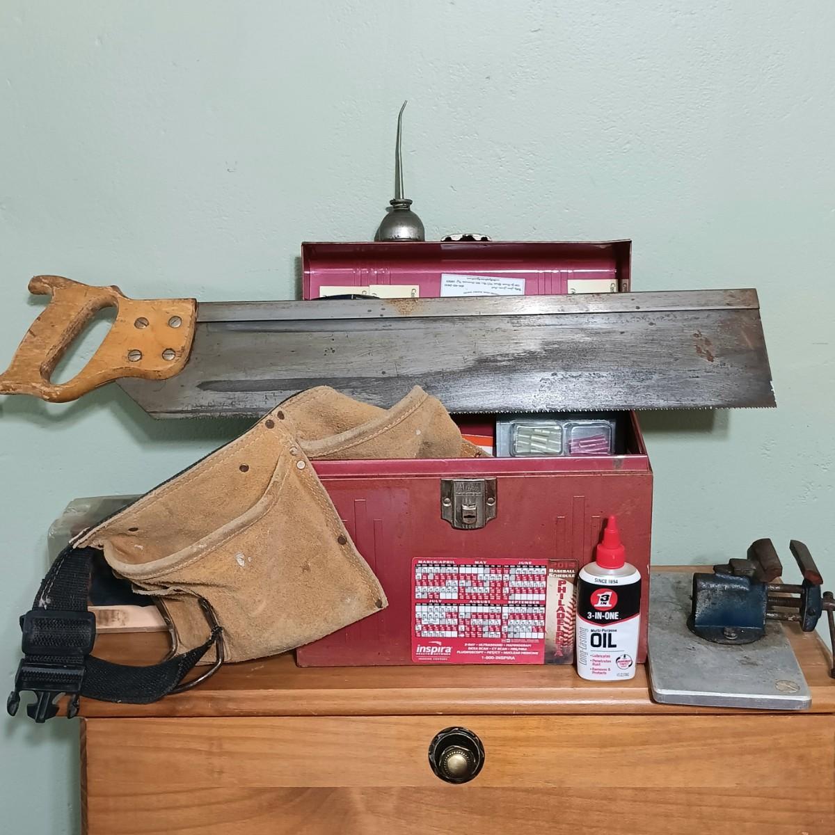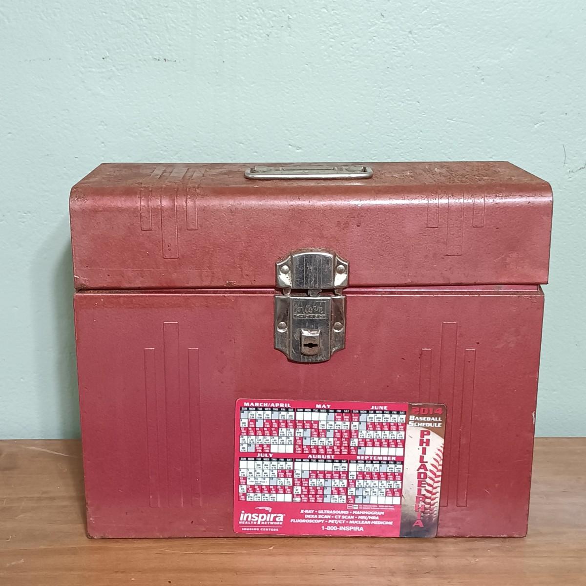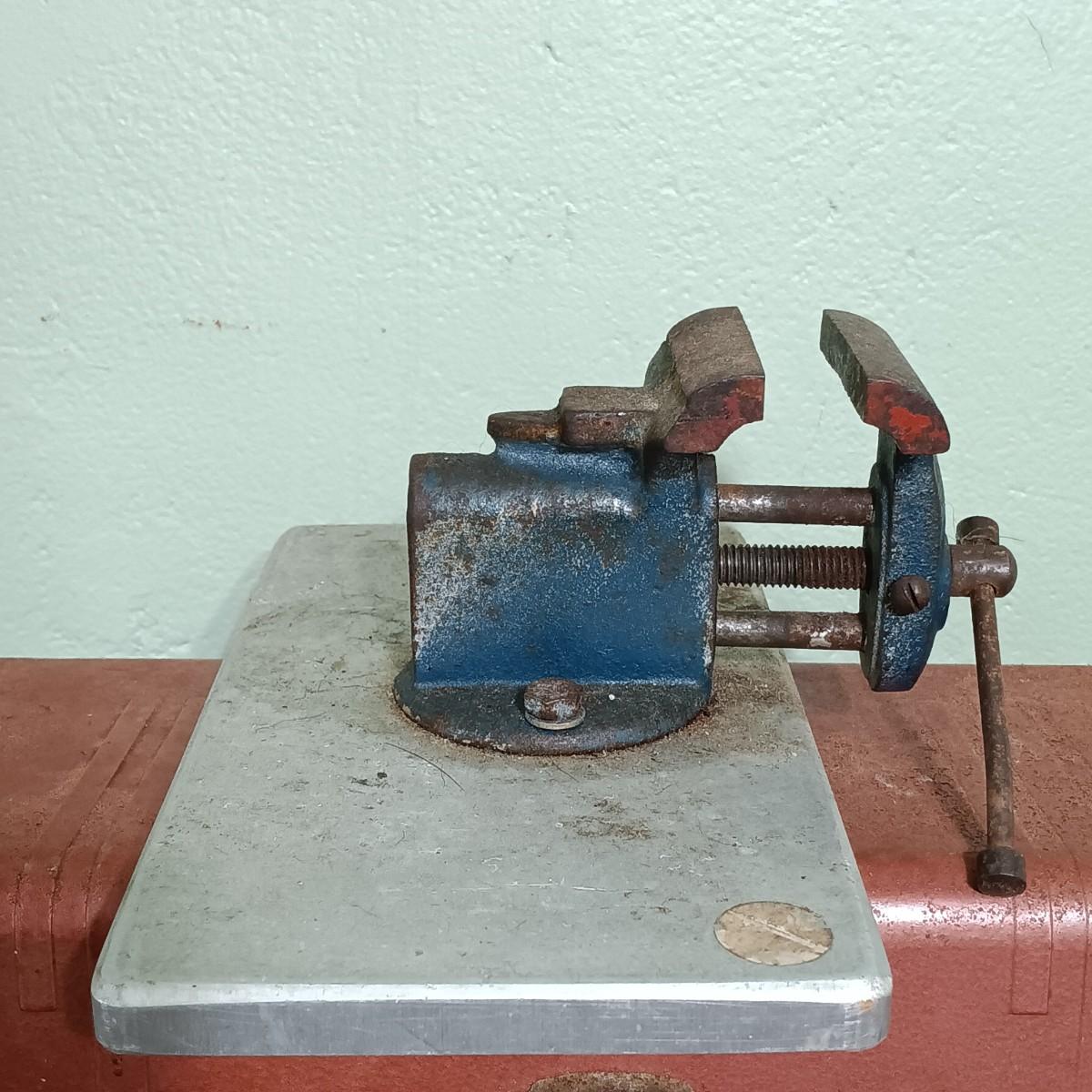 LOT 7: Vintage Acorn Chicago Tool Box with Small Anvil Vice & More