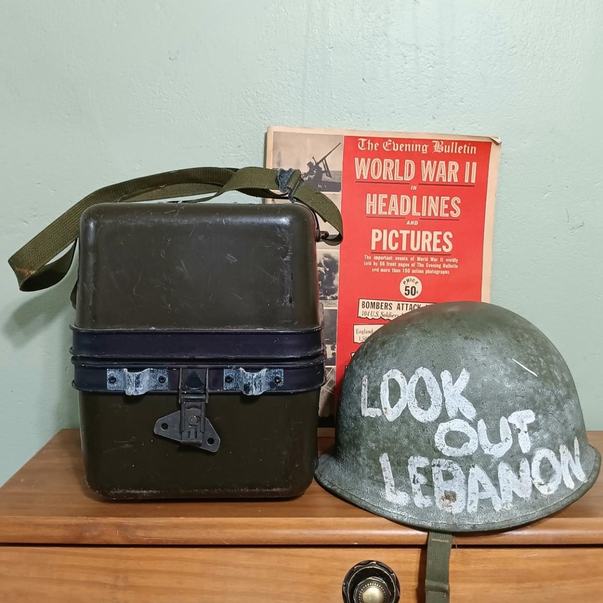 LOT 9: WWII Metal Military Helmet with Infrared Case & World War II in Headlines and Pictures 1946