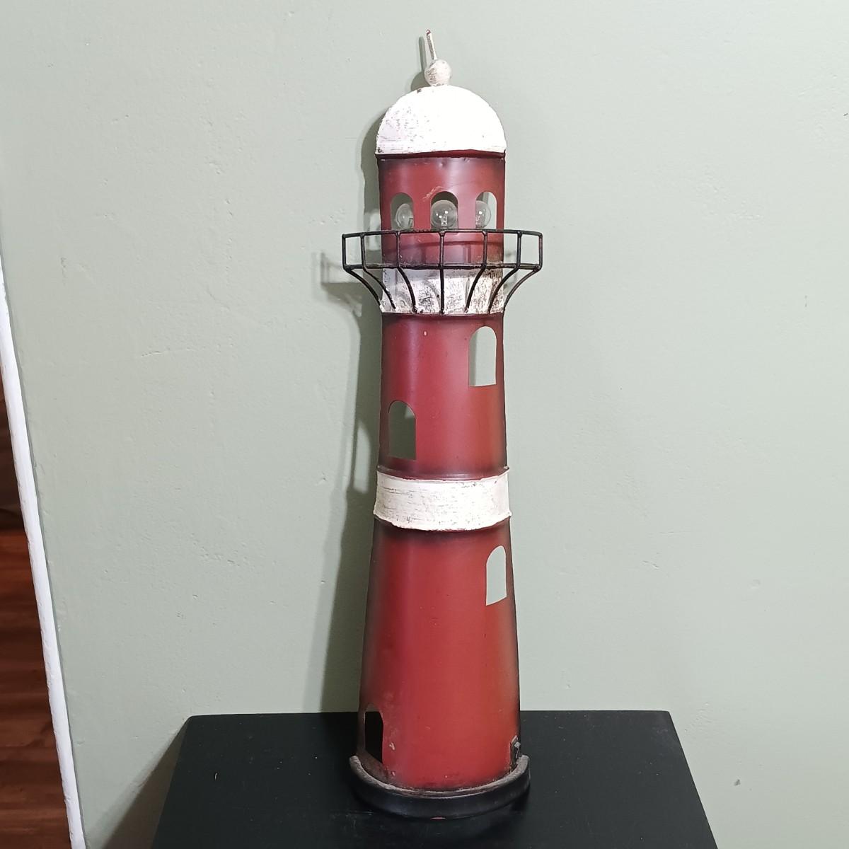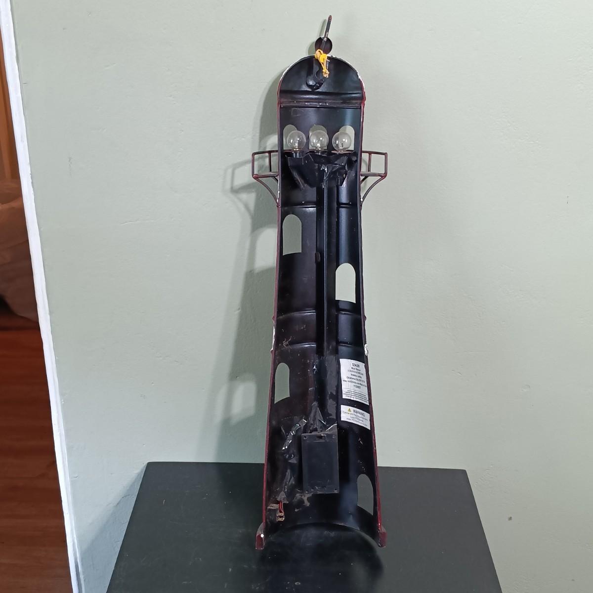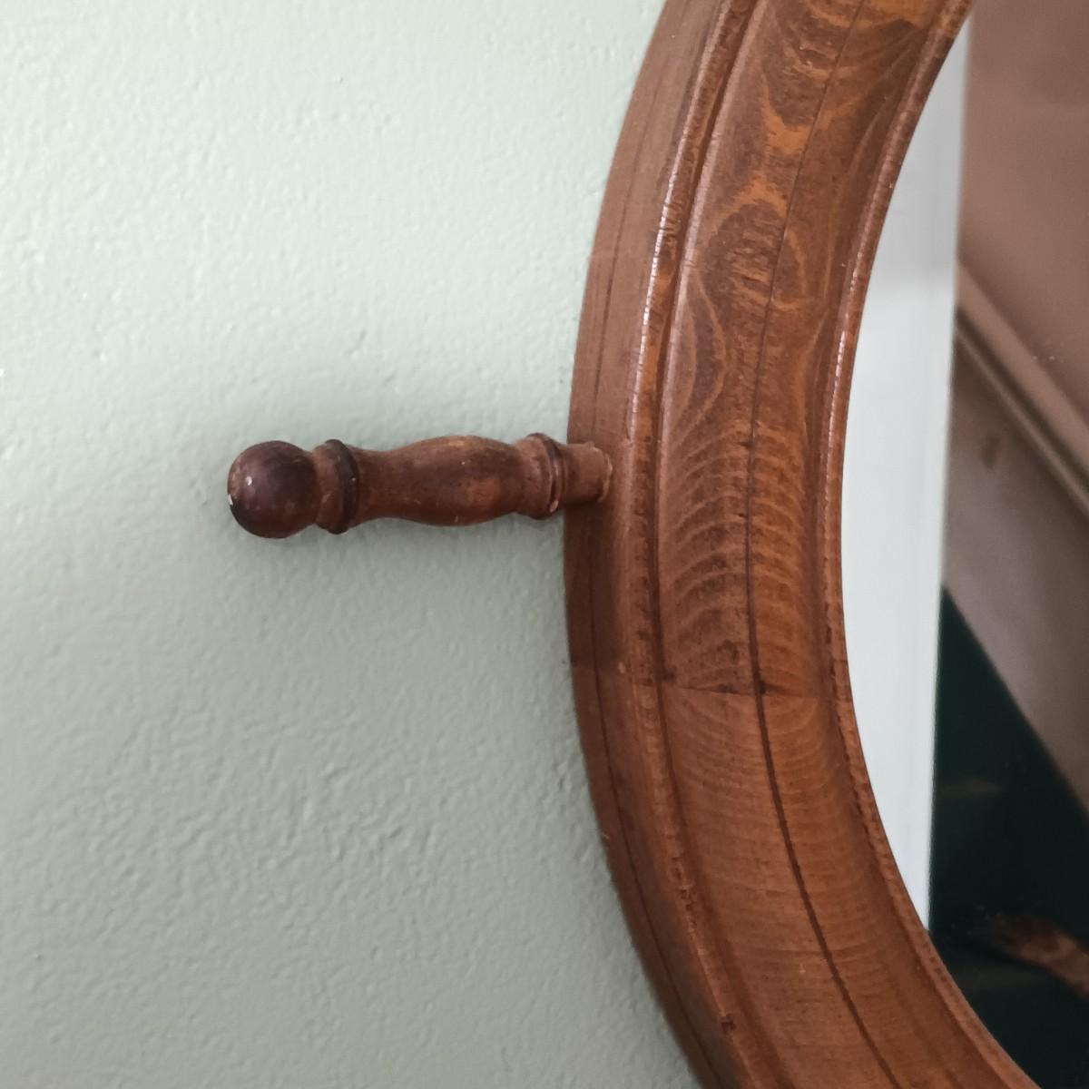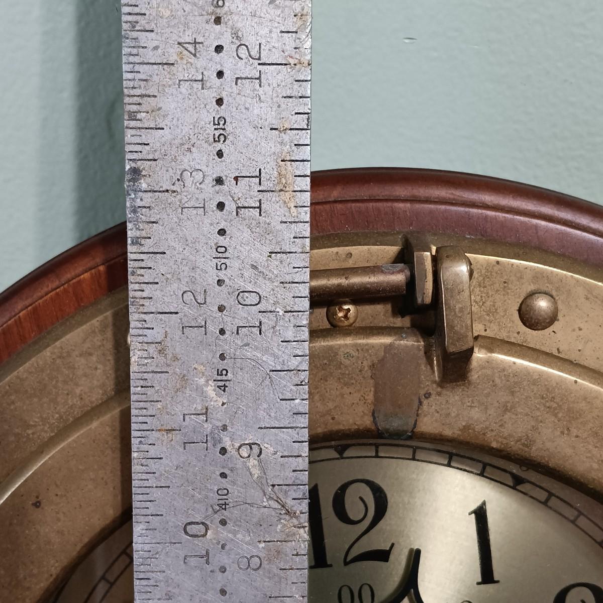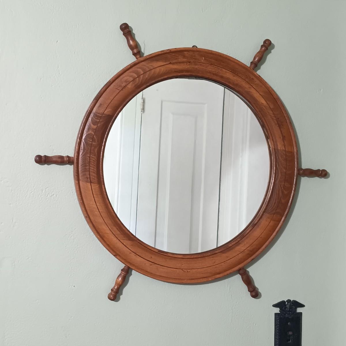 LOT 13: Bey Berk Brass Porthole Clock with Wooden Ship's Wheel Mirror & Lighthouse Wall Decor