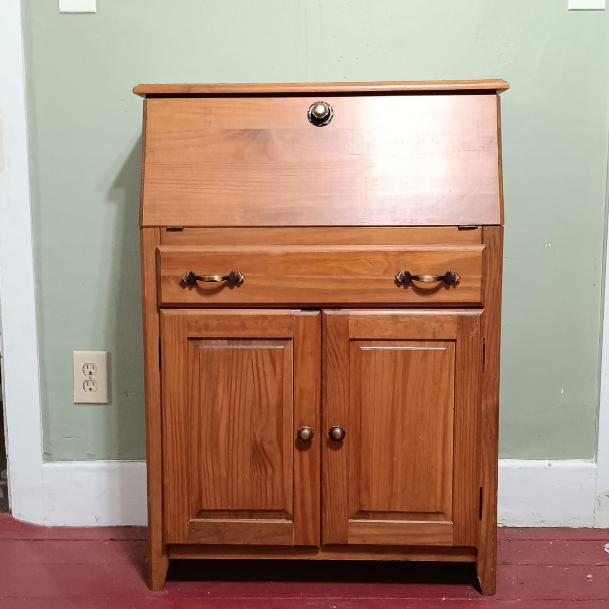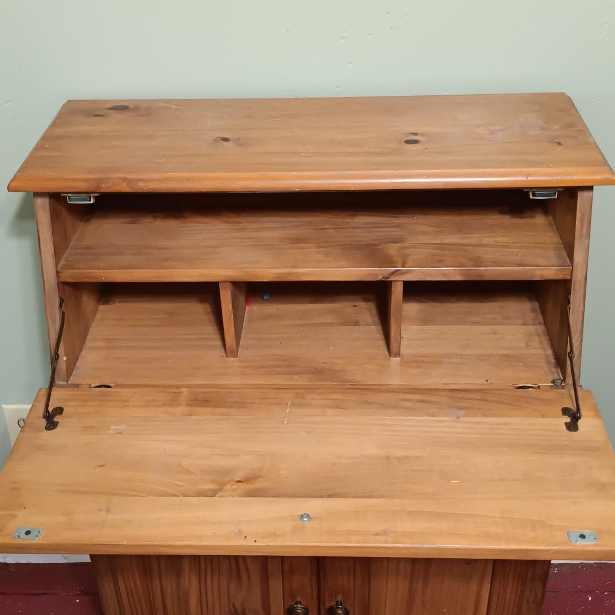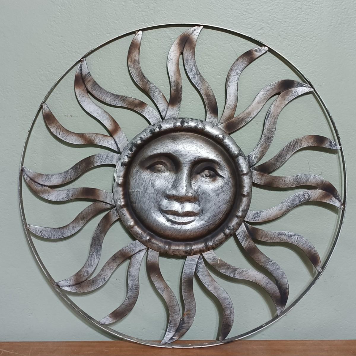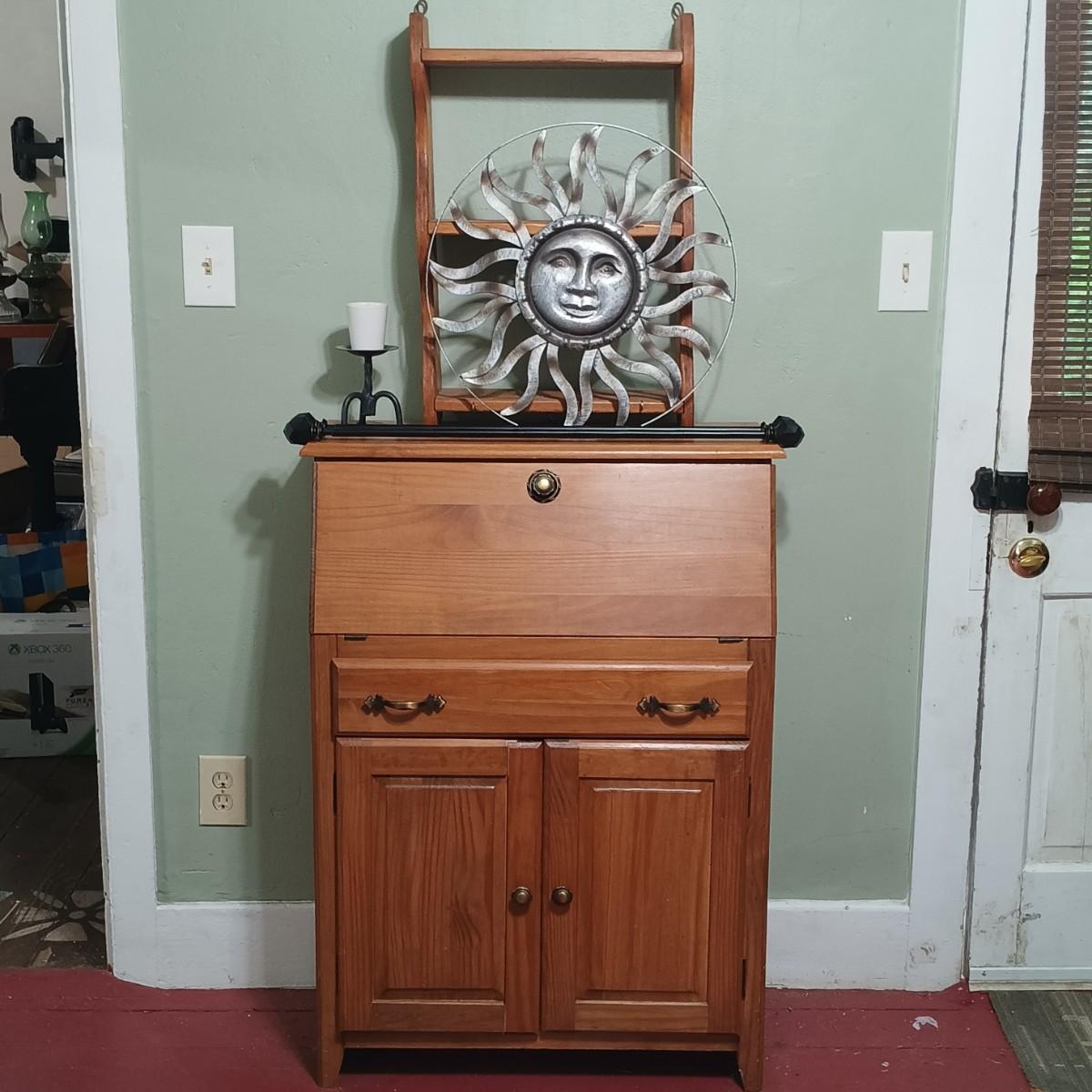 LOT 14: Rustic-Style Secretary Desk, Wood Wall Shelf, Metal Celestial Sun Wall Decor & More