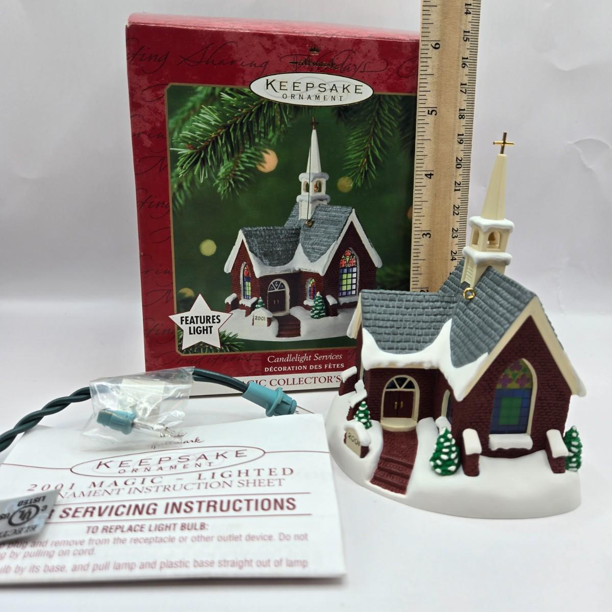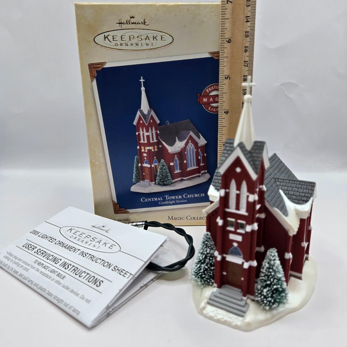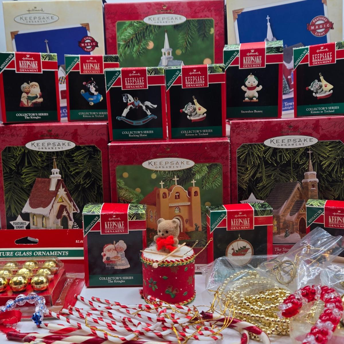 LOT 32: Hallmark Keepsake Lighted Church Ornaments, Miniature Hallmark Keepsake Ornaments, and More