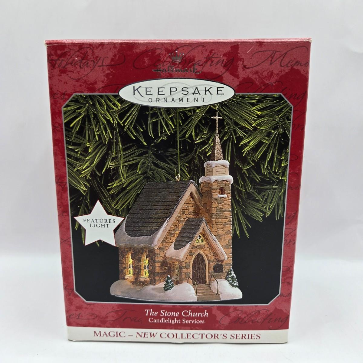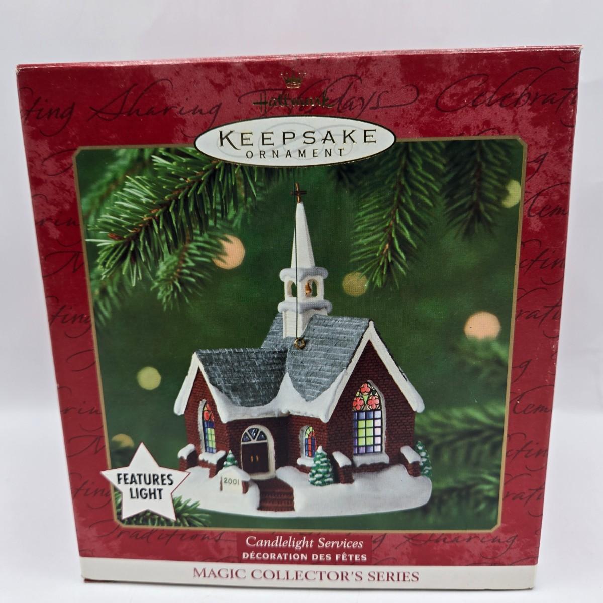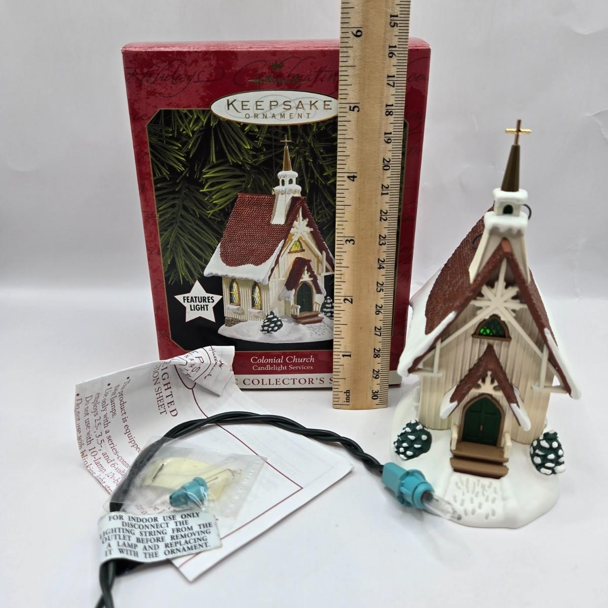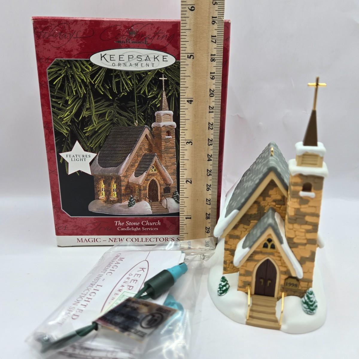 LOT 32: Hallmark Keepsake Lighted Church Ornaments, Miniature Hallmark Keepsake Ornaments, and More