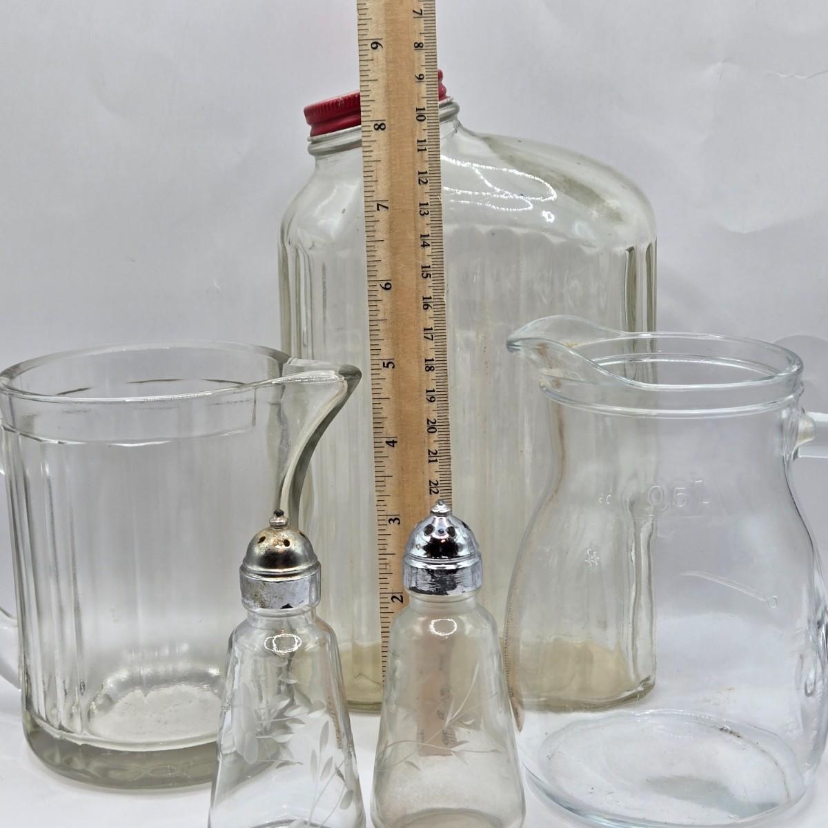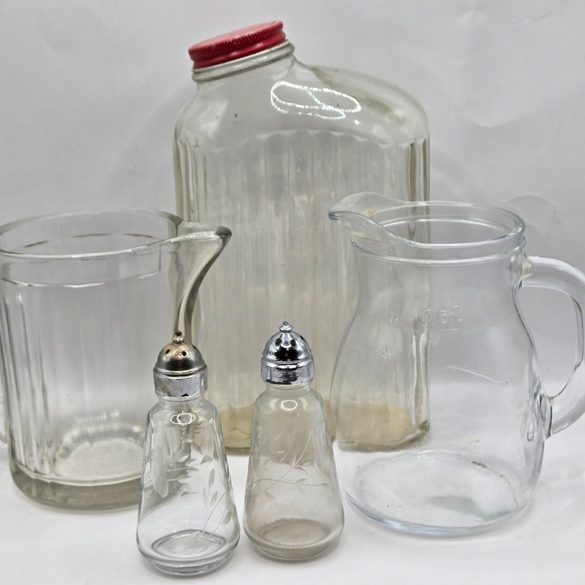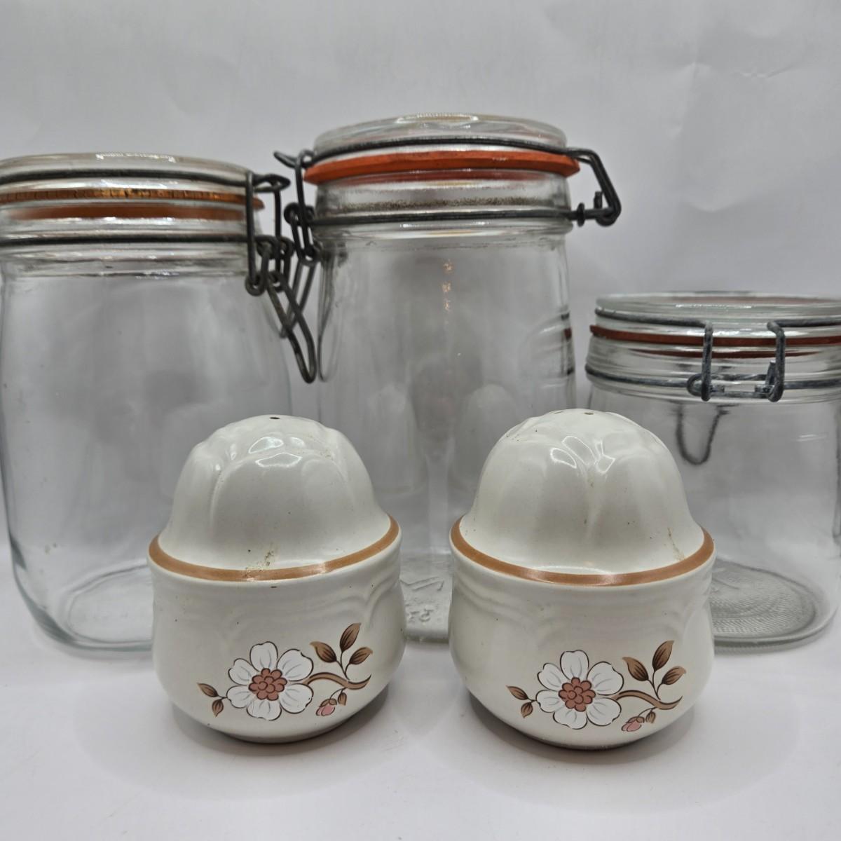 LOT 37: Kitchen Cabinet Lot Including Salt and Pepper Shakers, Vintage Coffee Pot, Coasters, Mortar and Pestle, and More
