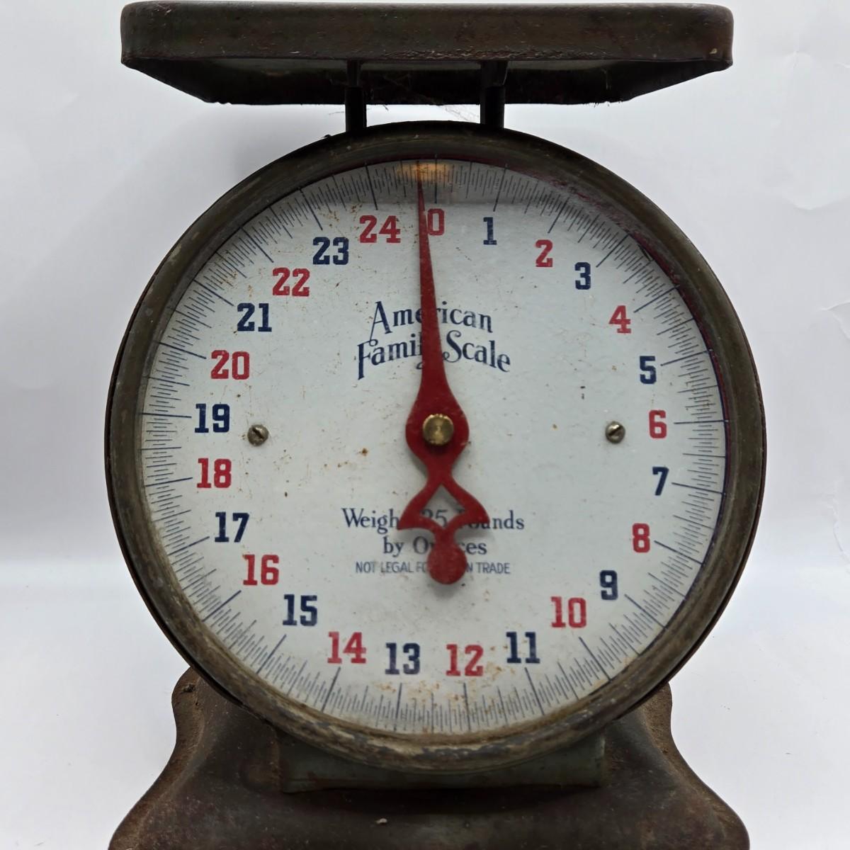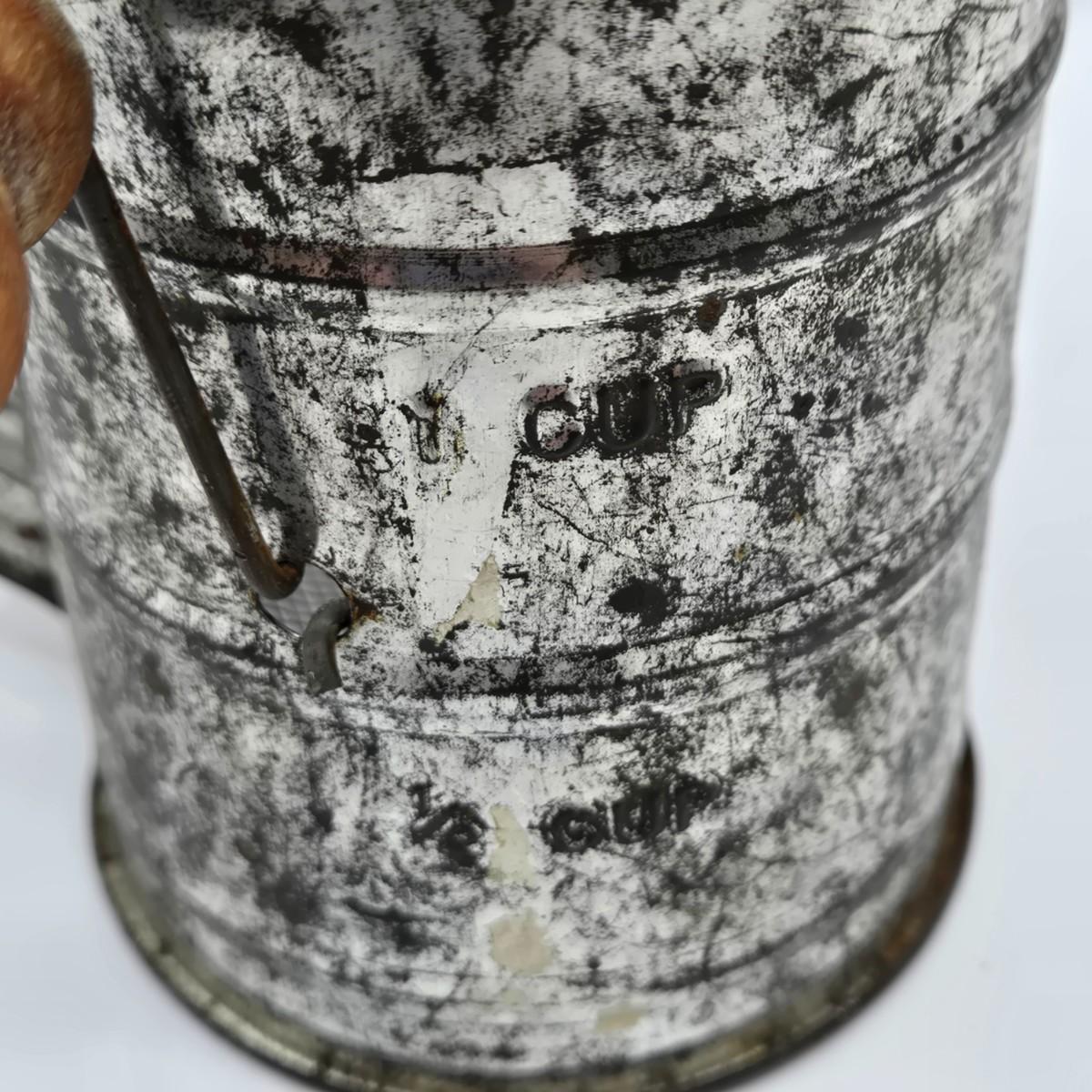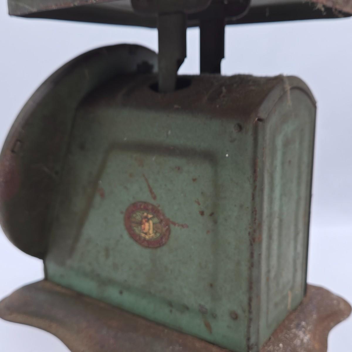 LOT 40: Vintage American Family Kitchen Scale, Androck Flour Sifter, Pennsylvania Dutch Peanut Crunch Tin & More