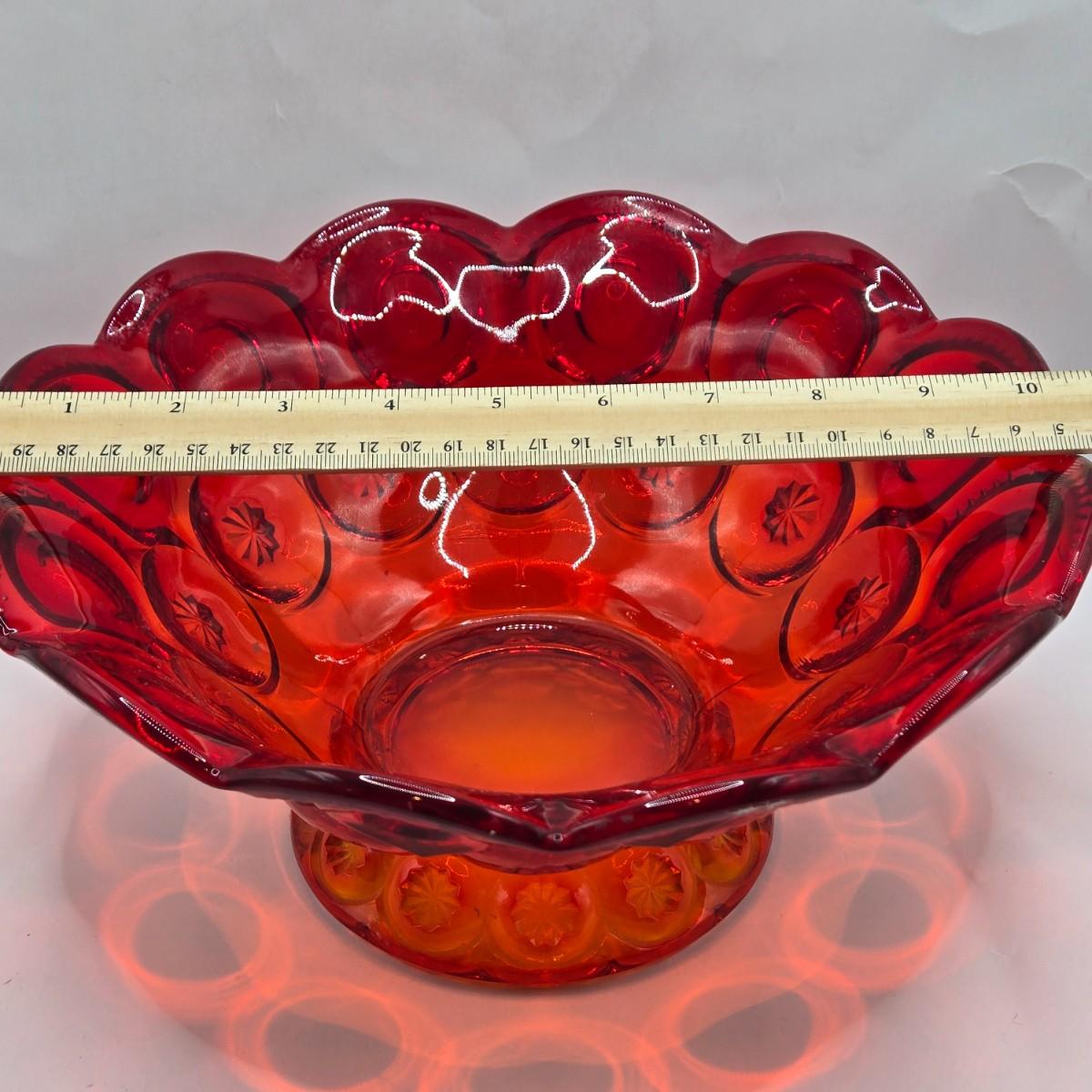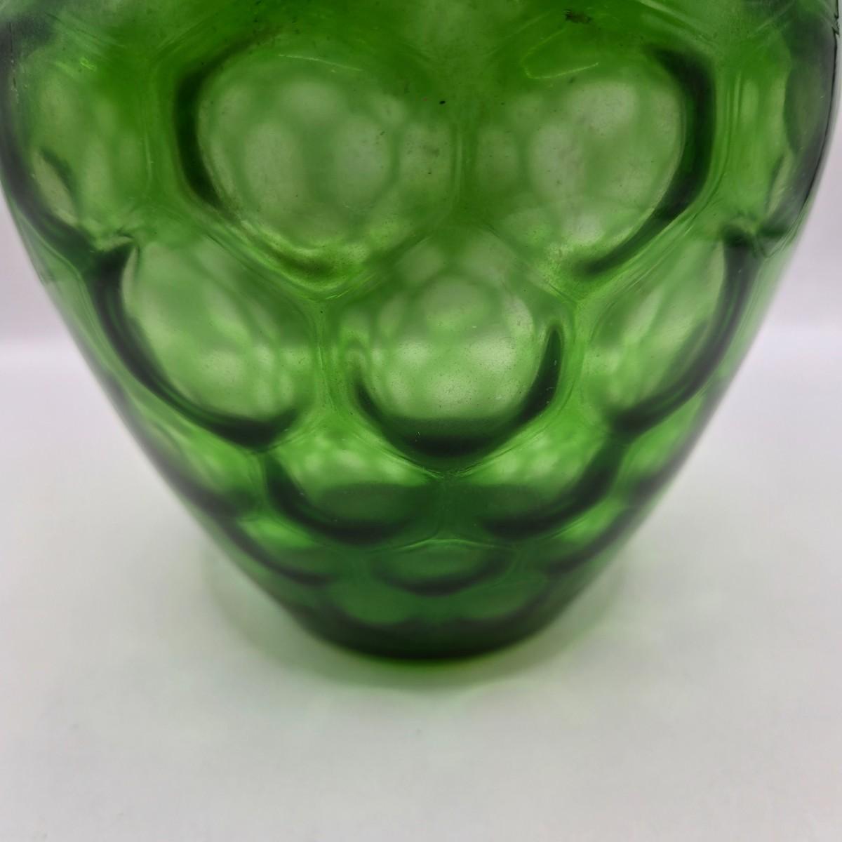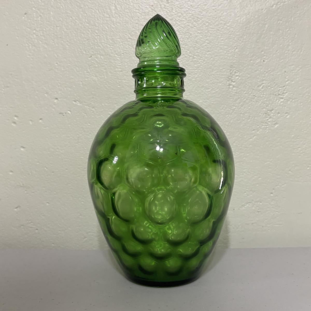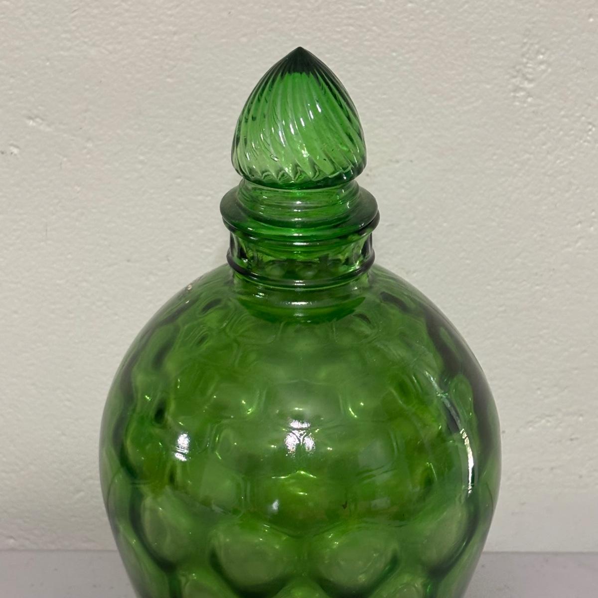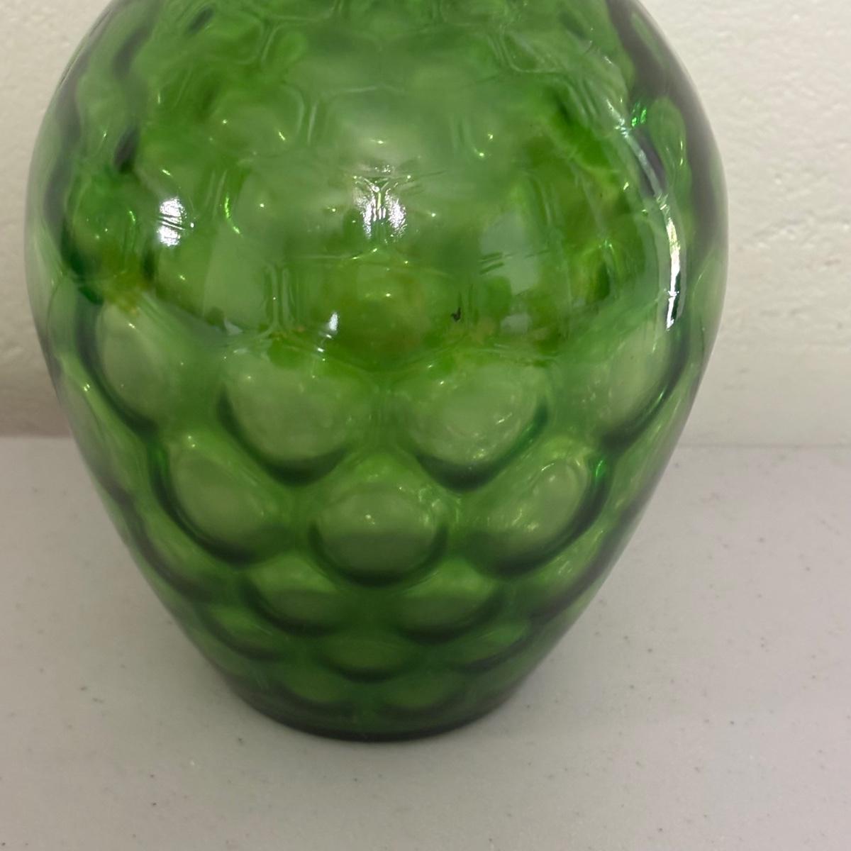 LOT 43: Look at Those Colors! Vintage Amberina Glass Scalloped Edge Pedestal Candy Dish/Bowl, Green Glass Raised Bubble Vase Bottle/Vase, Cobalt Blue Canister/Jar (maybe missing lid)