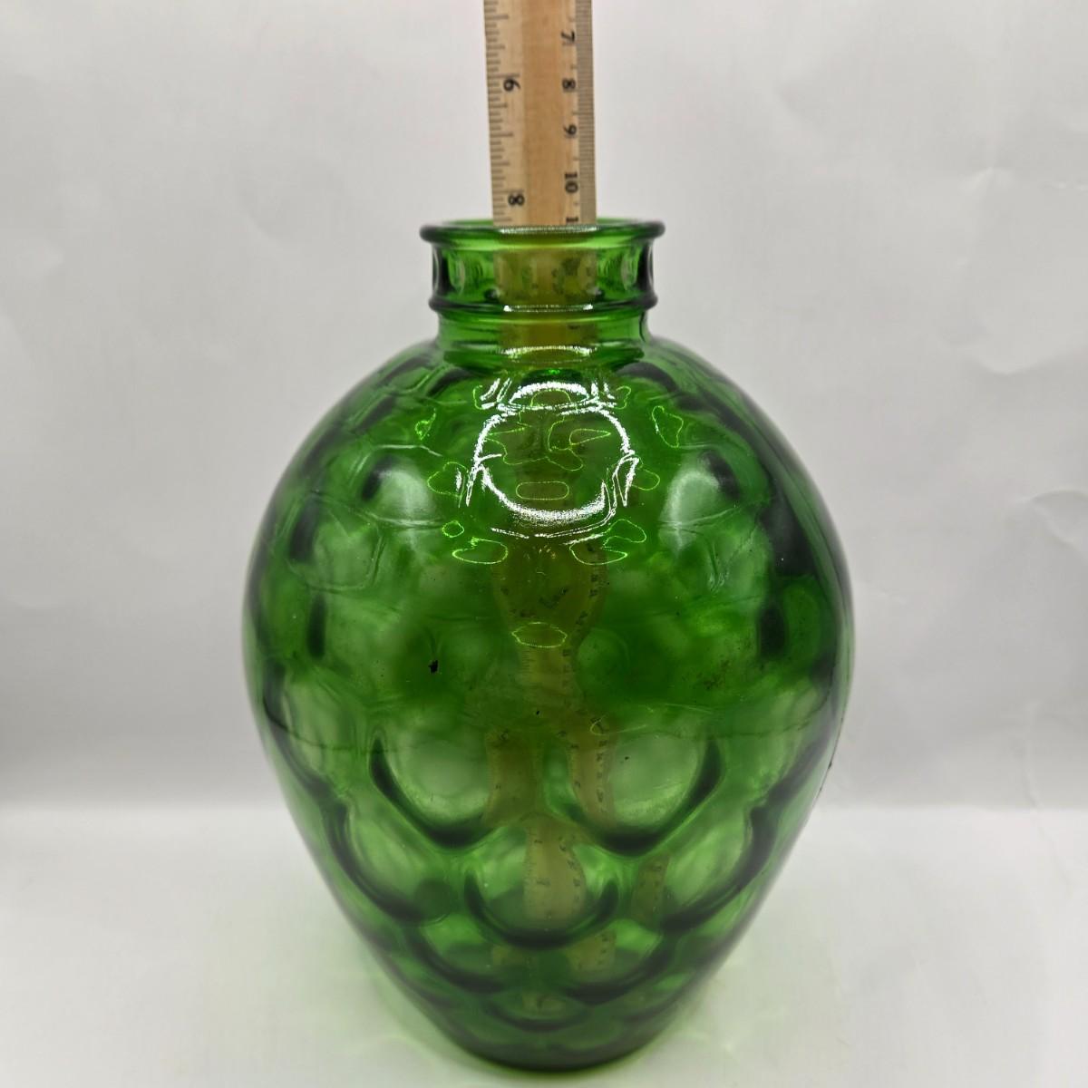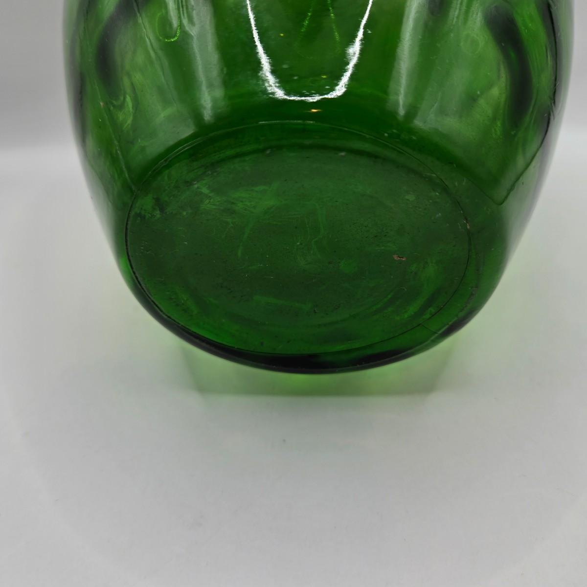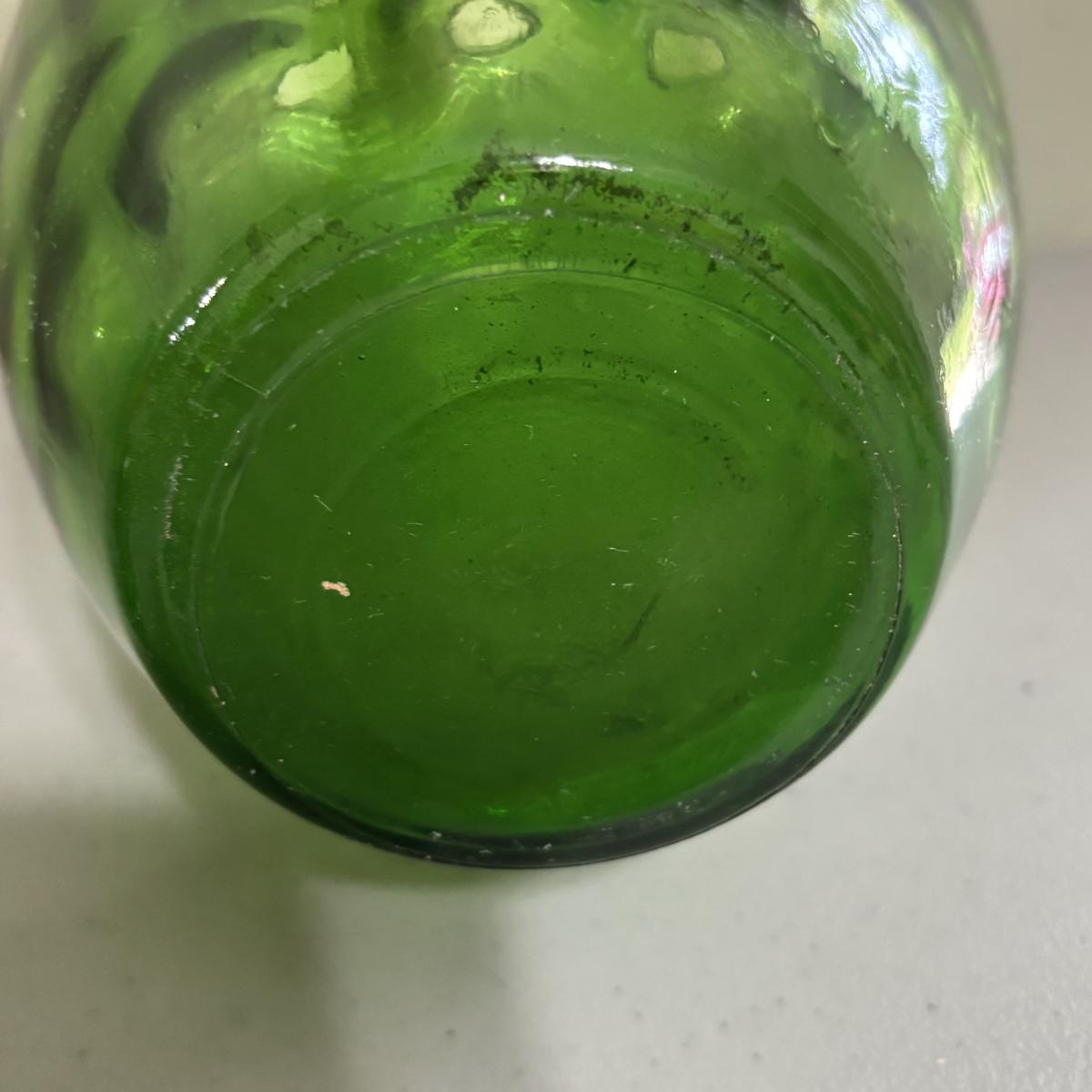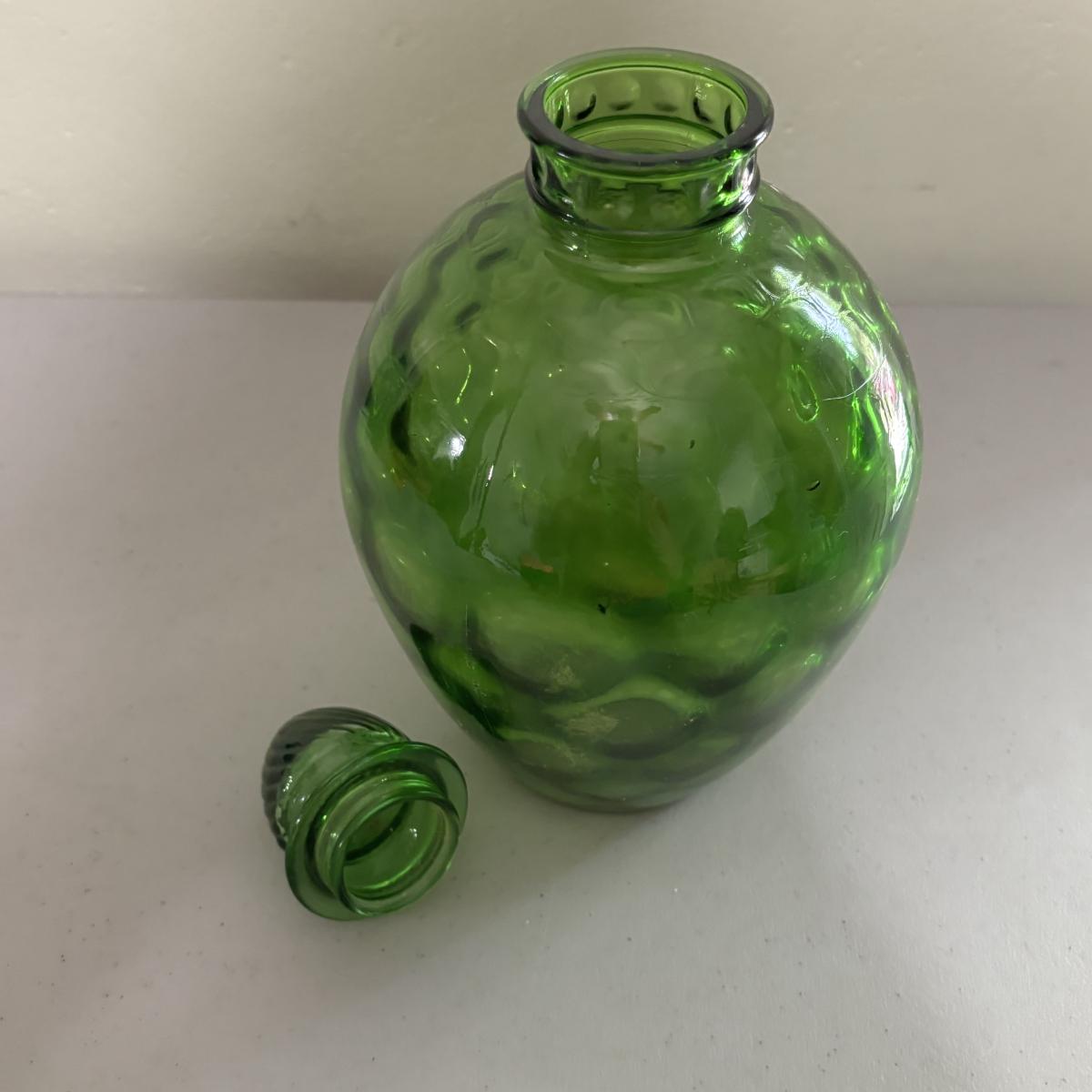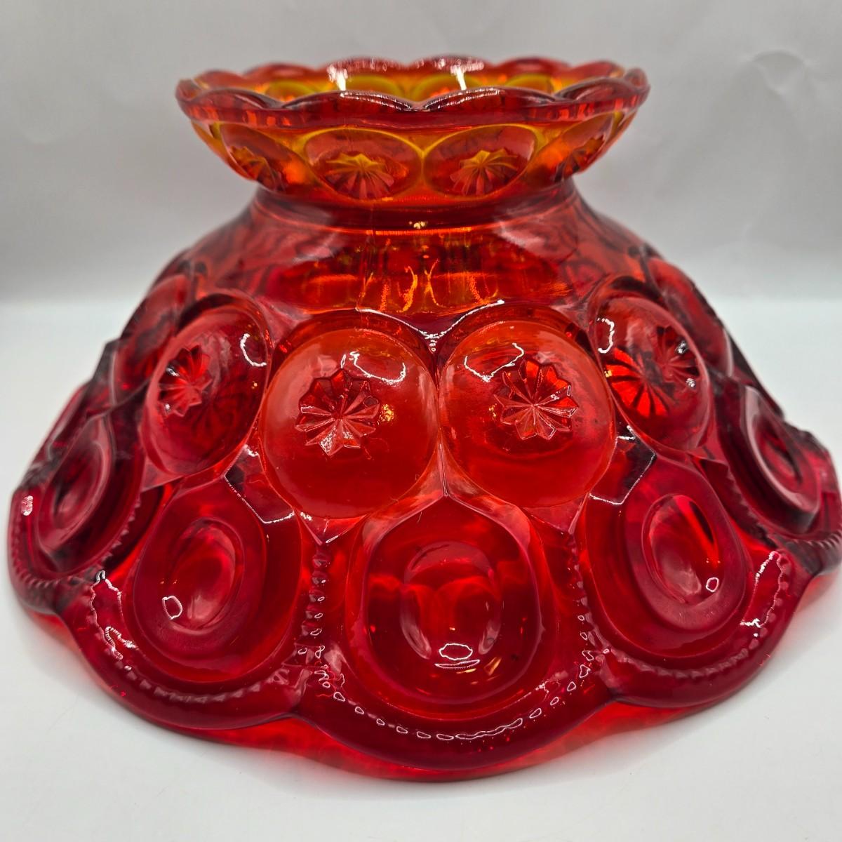 LOT 43: Look at Those Colors! Vintage Amberina Glass Scalloped Edge Pedestal Candy Dish/Bowl, Green Glass Raised Bubble Vase Bottle/Vase, Cobalt Blue Canister/Jar (maybe missing lid)