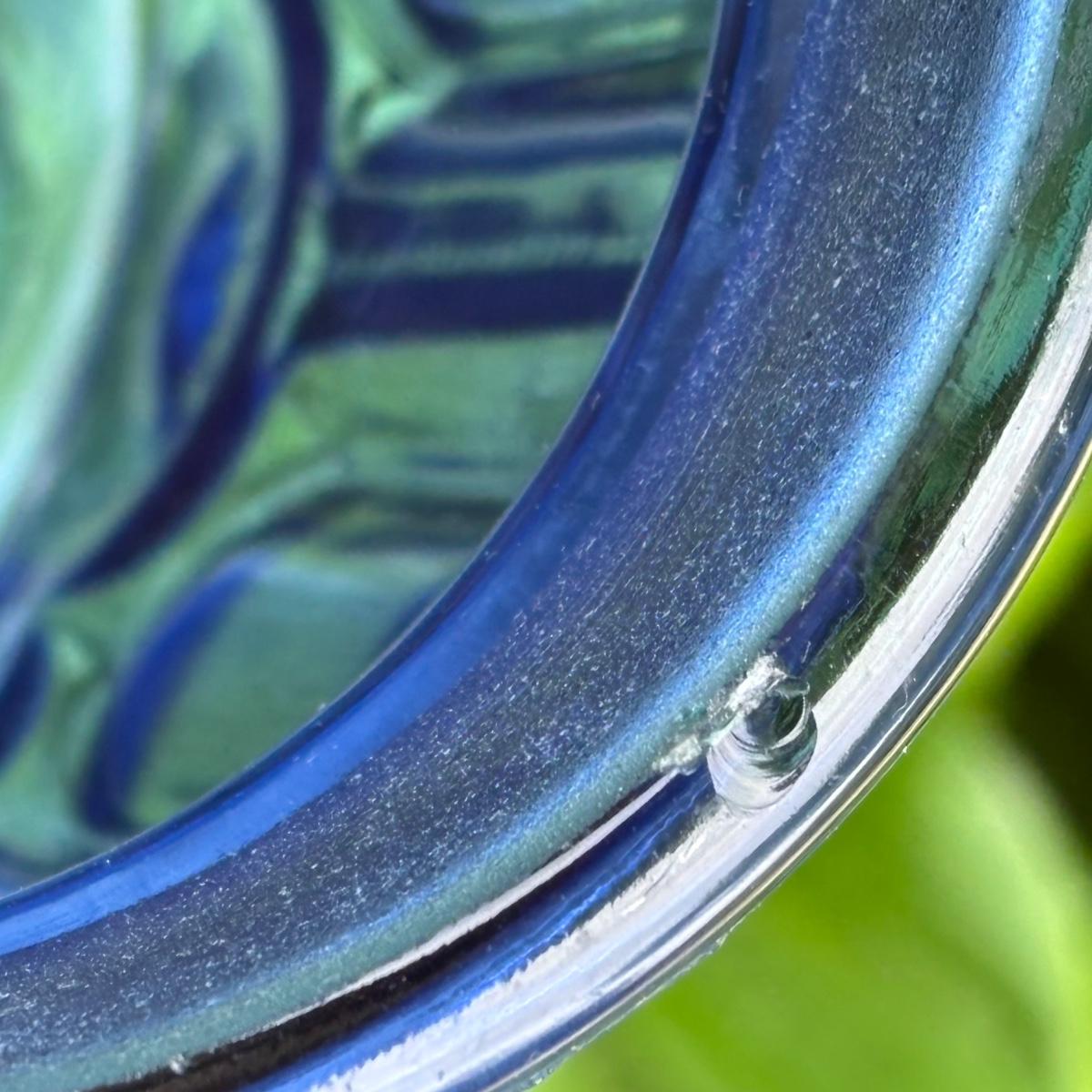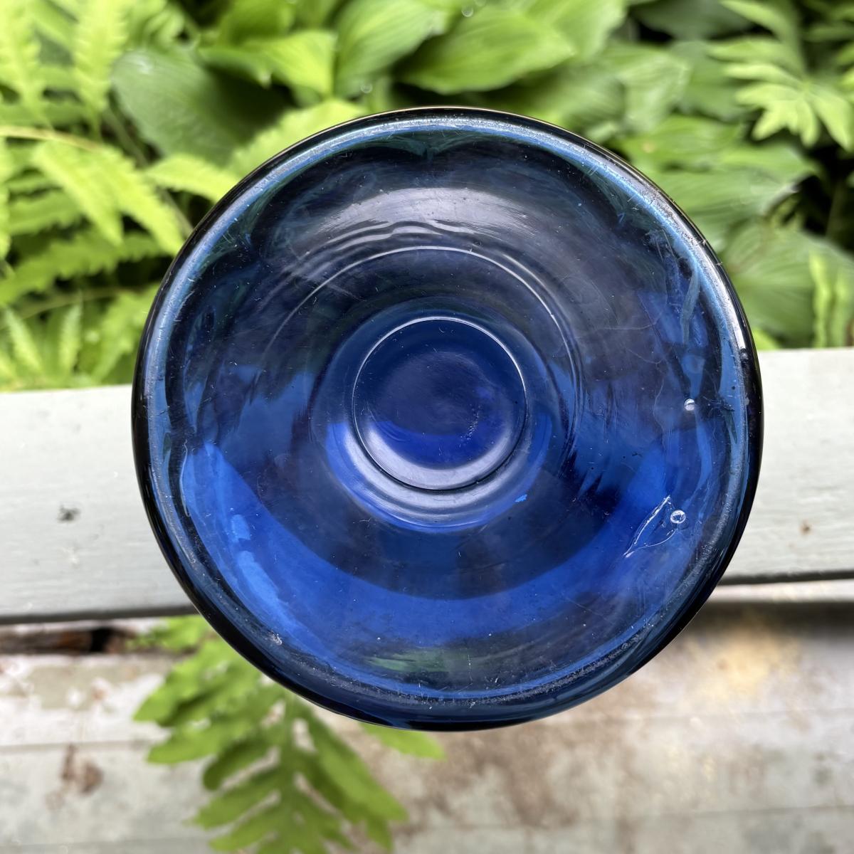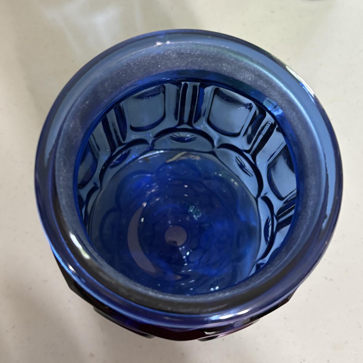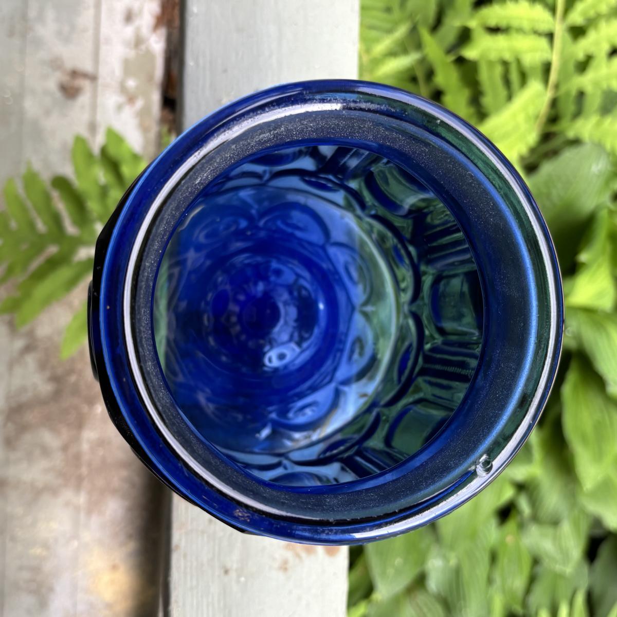 Cobalt Blue jar maybe missing lid and has slight chip in rim.