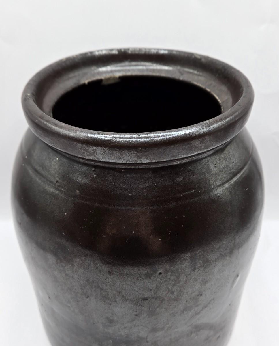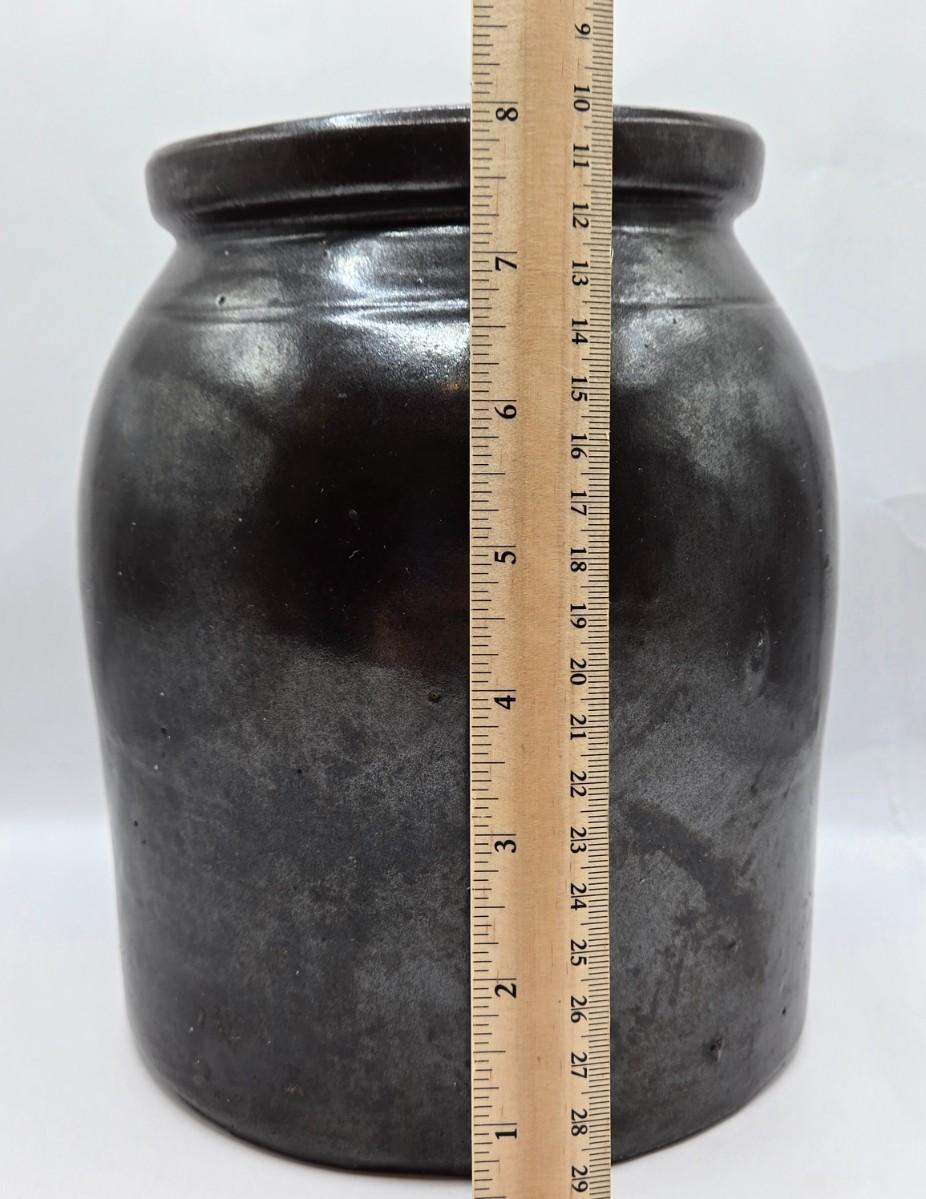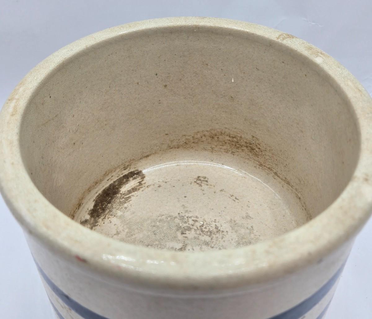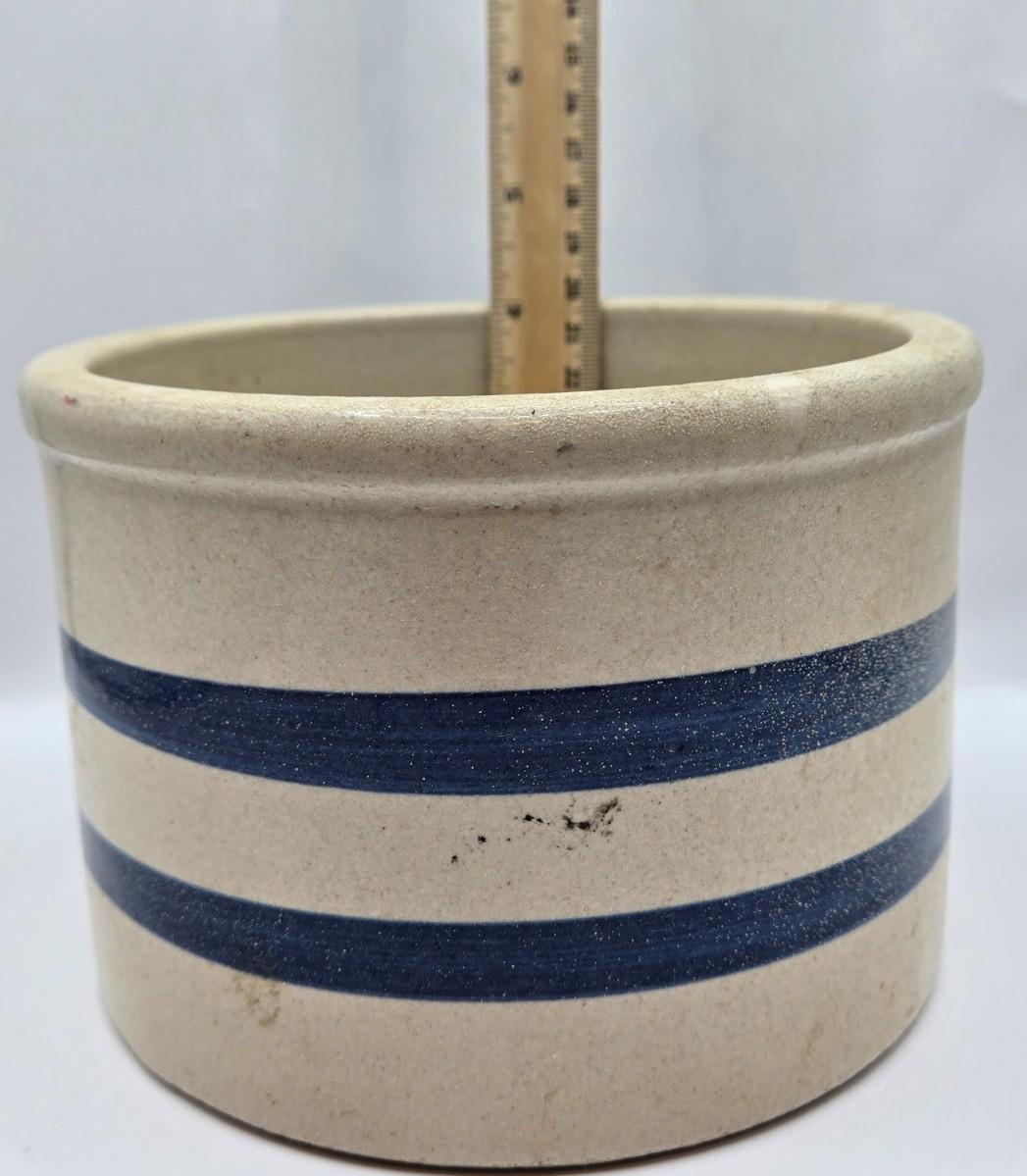 LOT 46: Vintage Robinson Ransbottom, Roseville Ohio 1qt. Blue Stripped Crock/Jar along with a Brown Glazed Crock
