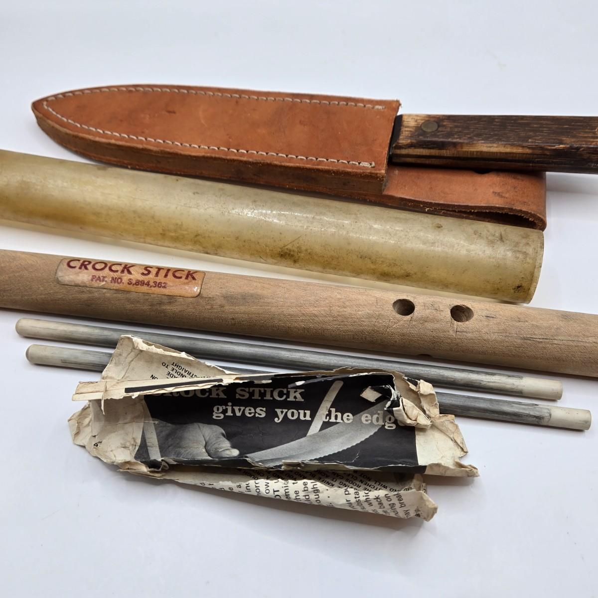 LOT 54: Crock Stick Knife Sharpener and Bramec Knife