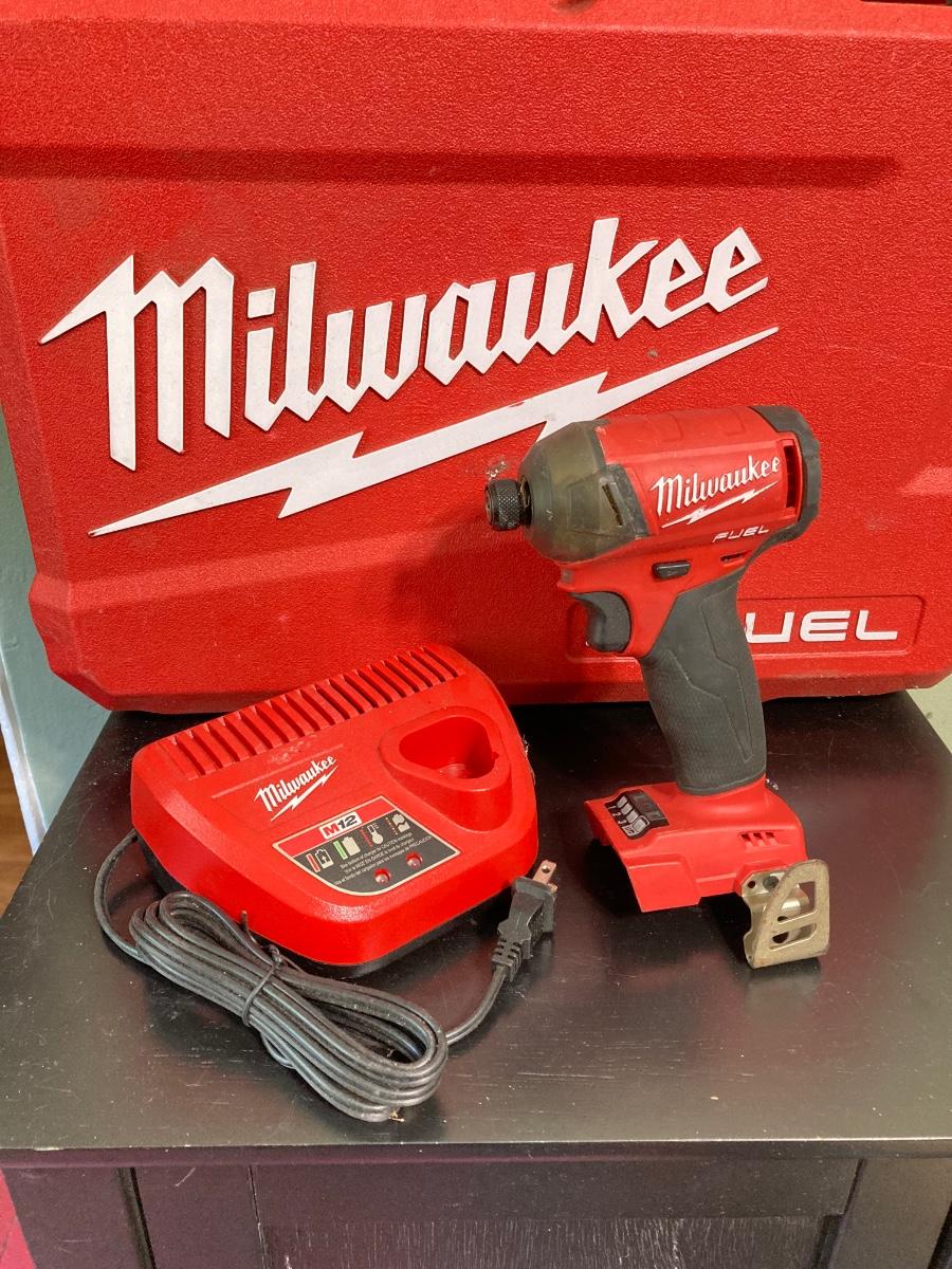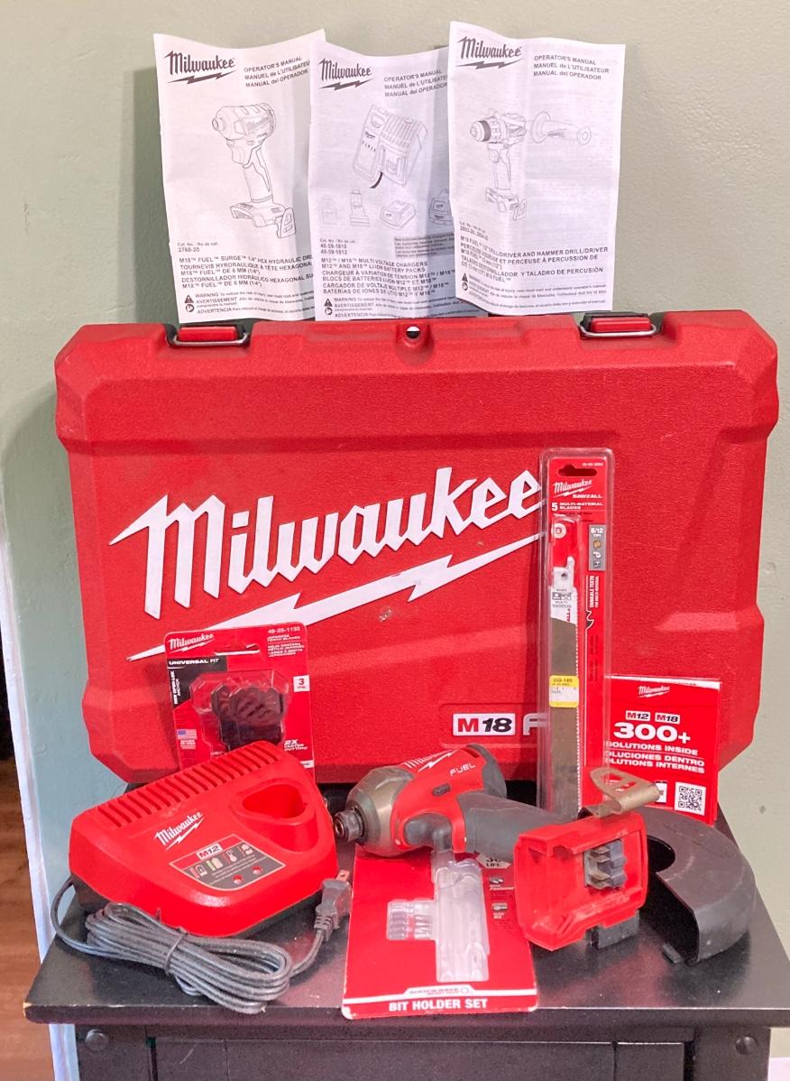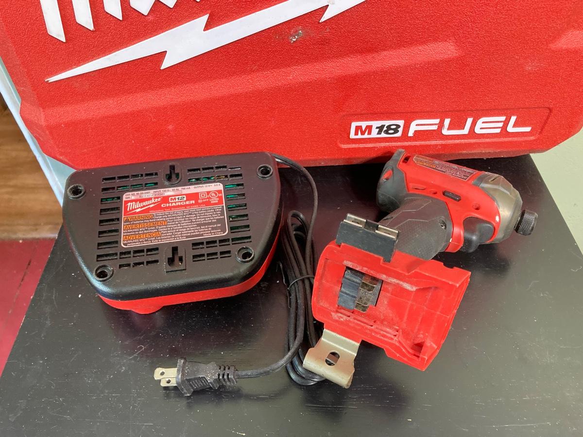 LOT 58: Milwaukee Tools and Accessories - Fuel Hex Hydraulic Driver, Charger with Storage Case and More