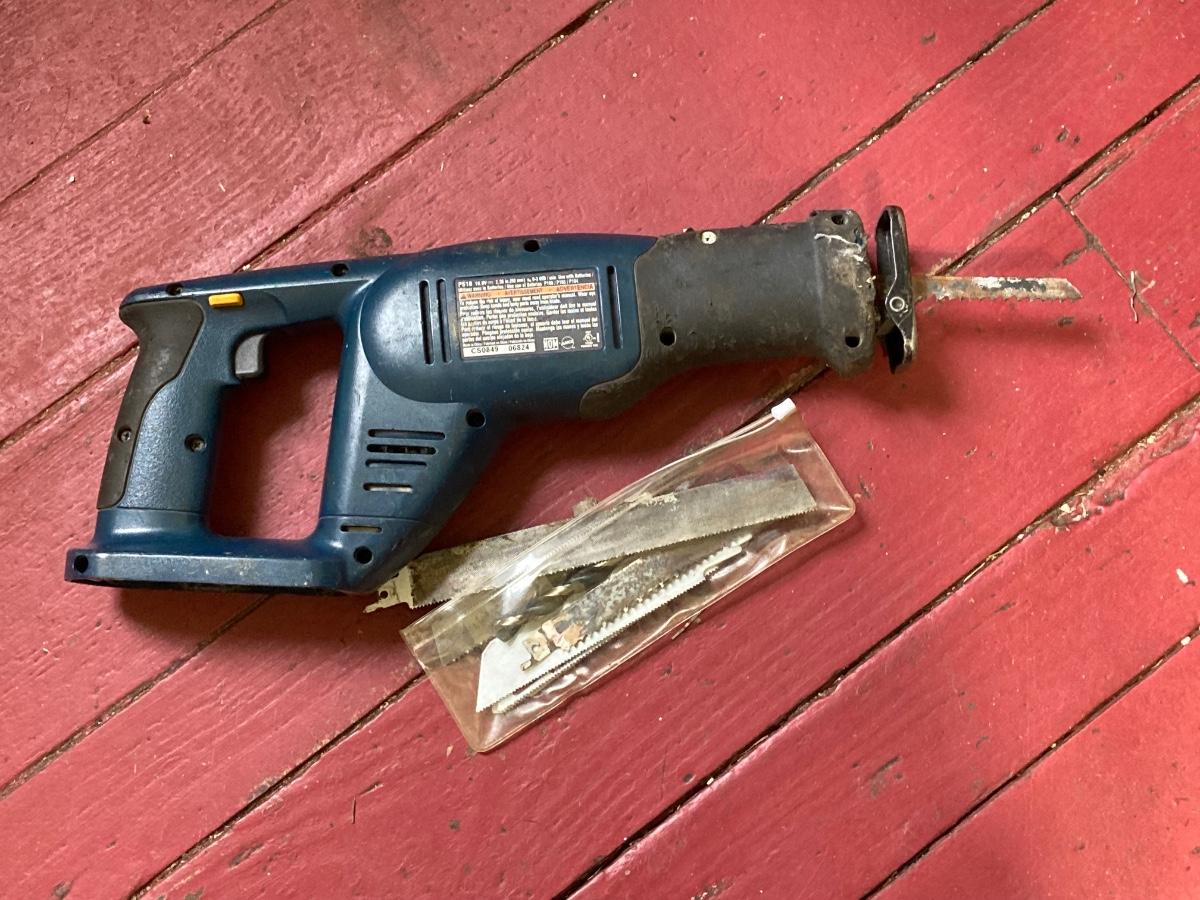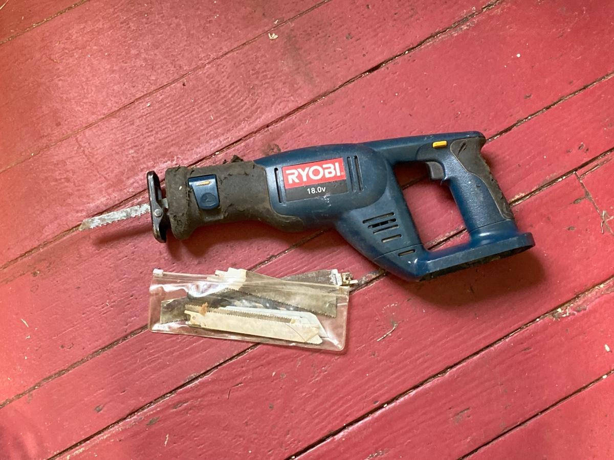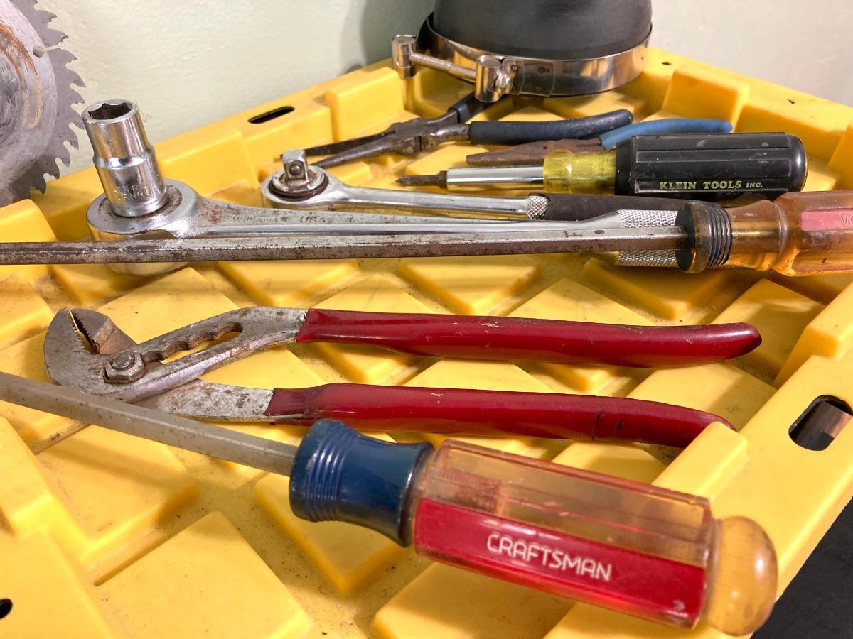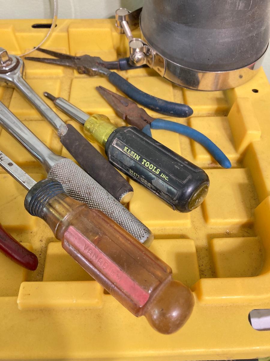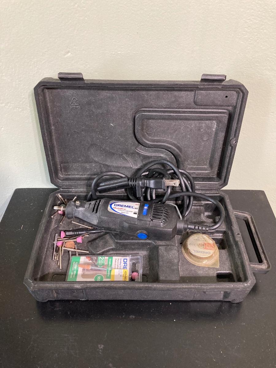 LOT 59: Assorted Tools - Hyper Tough Drill, Dremel Rotary Tool, Tough Box Storage Tote, Ryobi Reciprocating Saw, Hand Tools and More