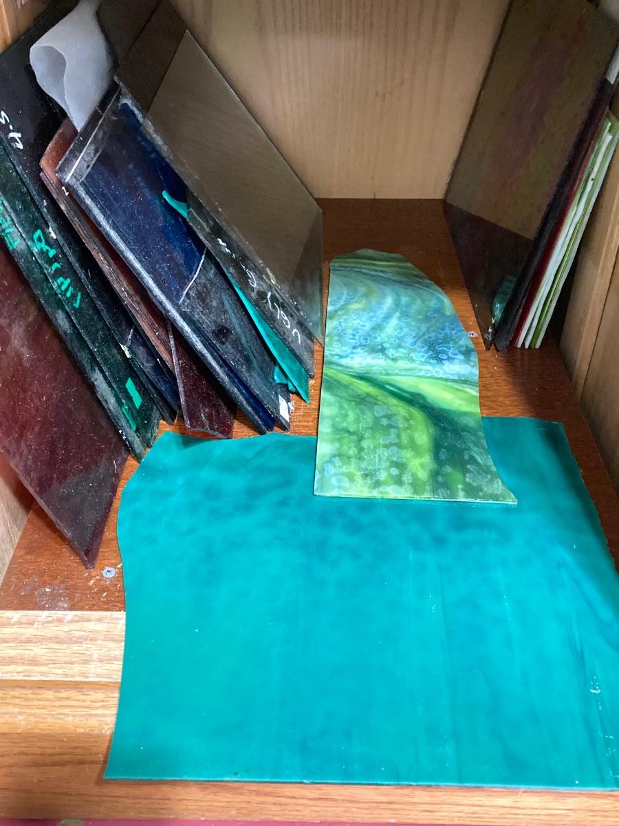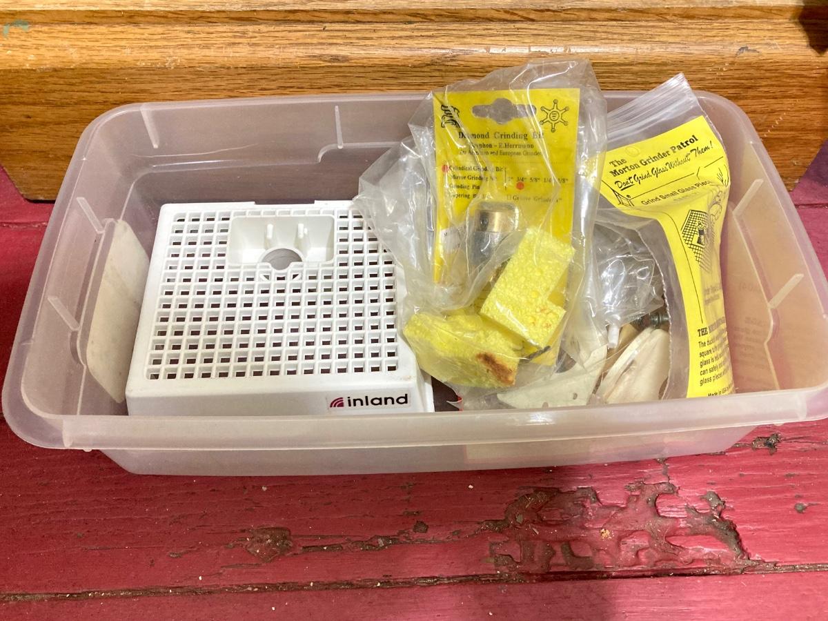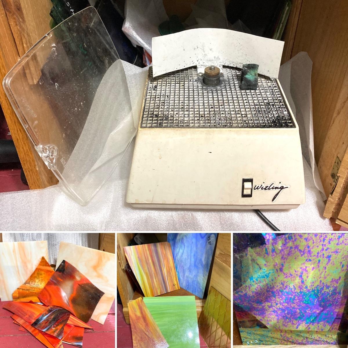 LOT 70: Inland Wizling Glass Grinding Machine with Assorted Stained Glass and More