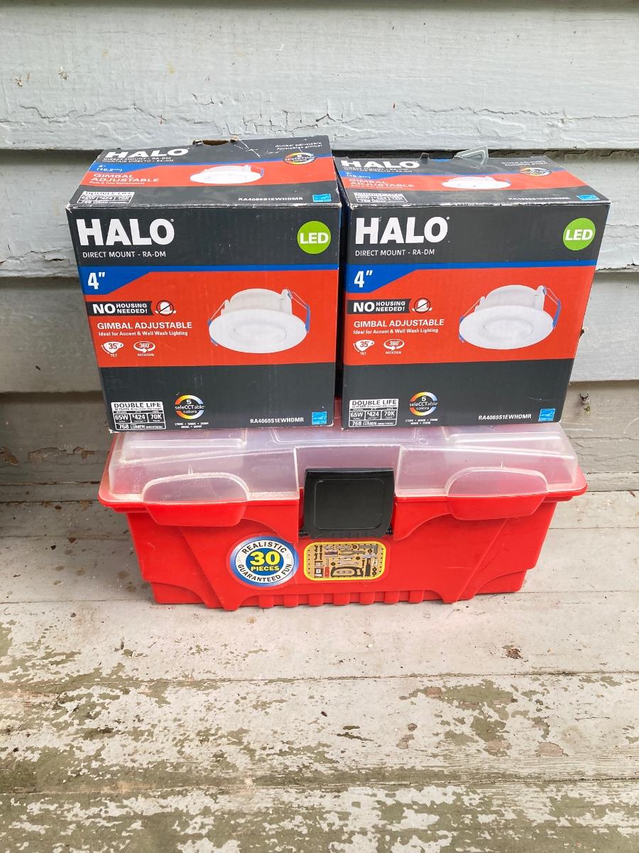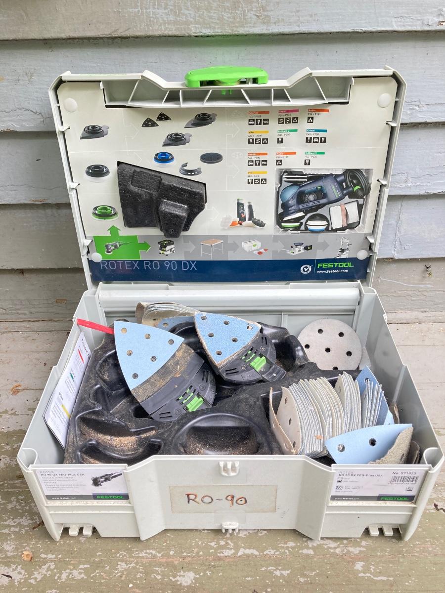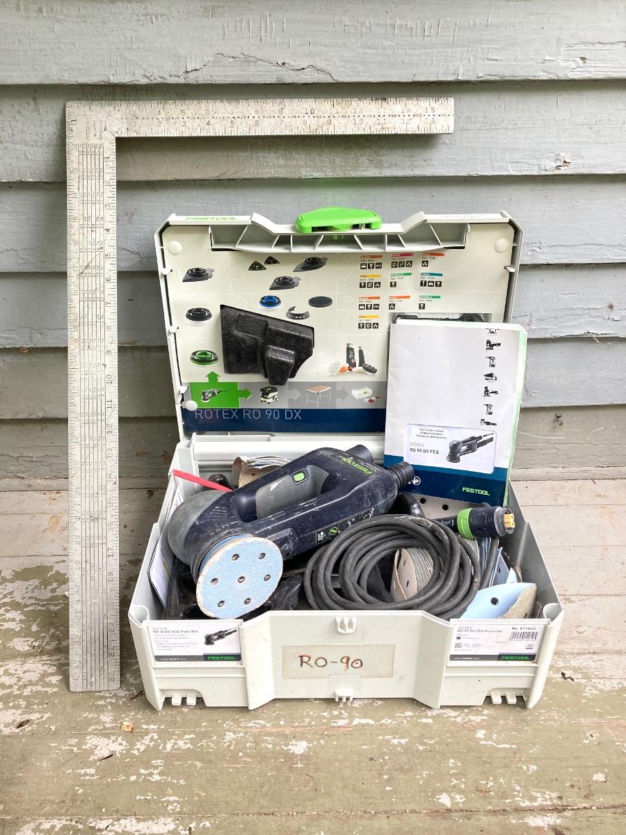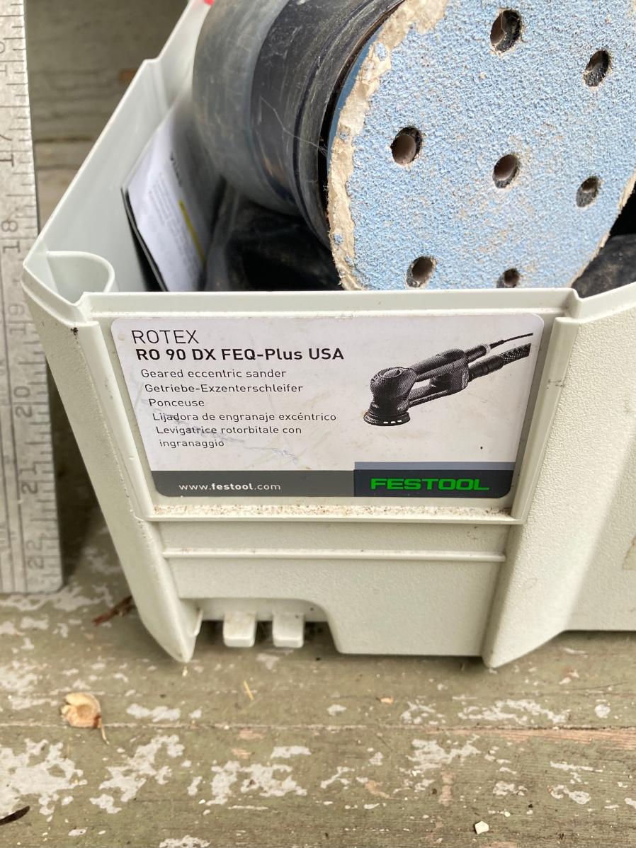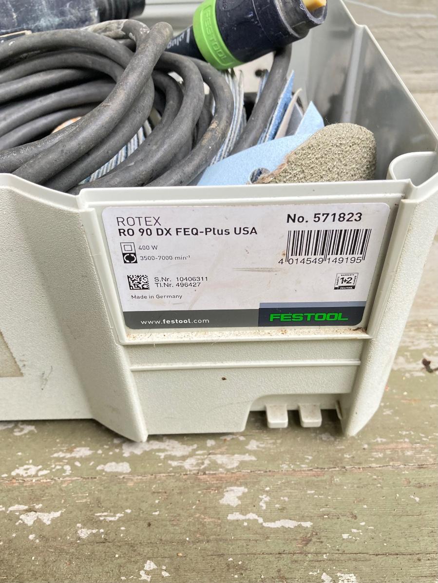LOT 71: Festool Rotex RO 90 DX FEQ-Plus Sanding Tool in Case, Tools, Storage Boxes with Hardware and Pair of Halo Lights