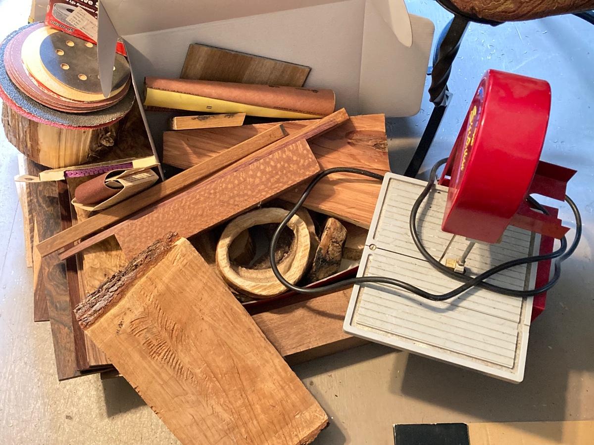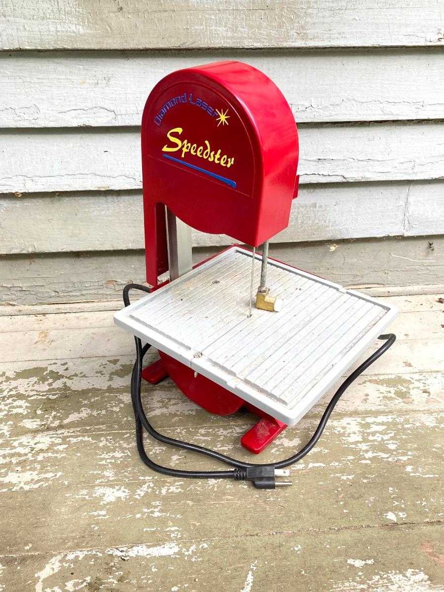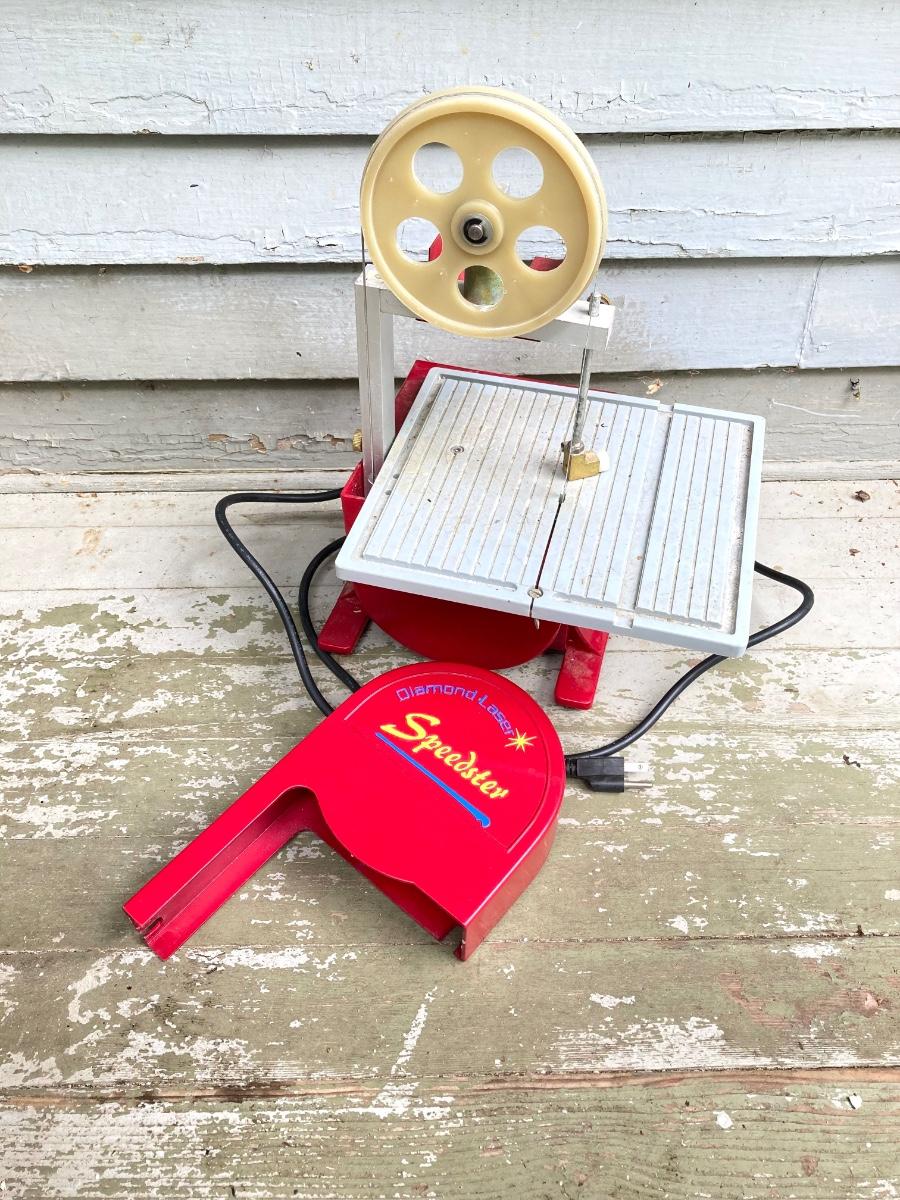 LOT 72: Speedster Diamond Glass Table Saw with Assorted Crafting / Decorative Wood Pieces